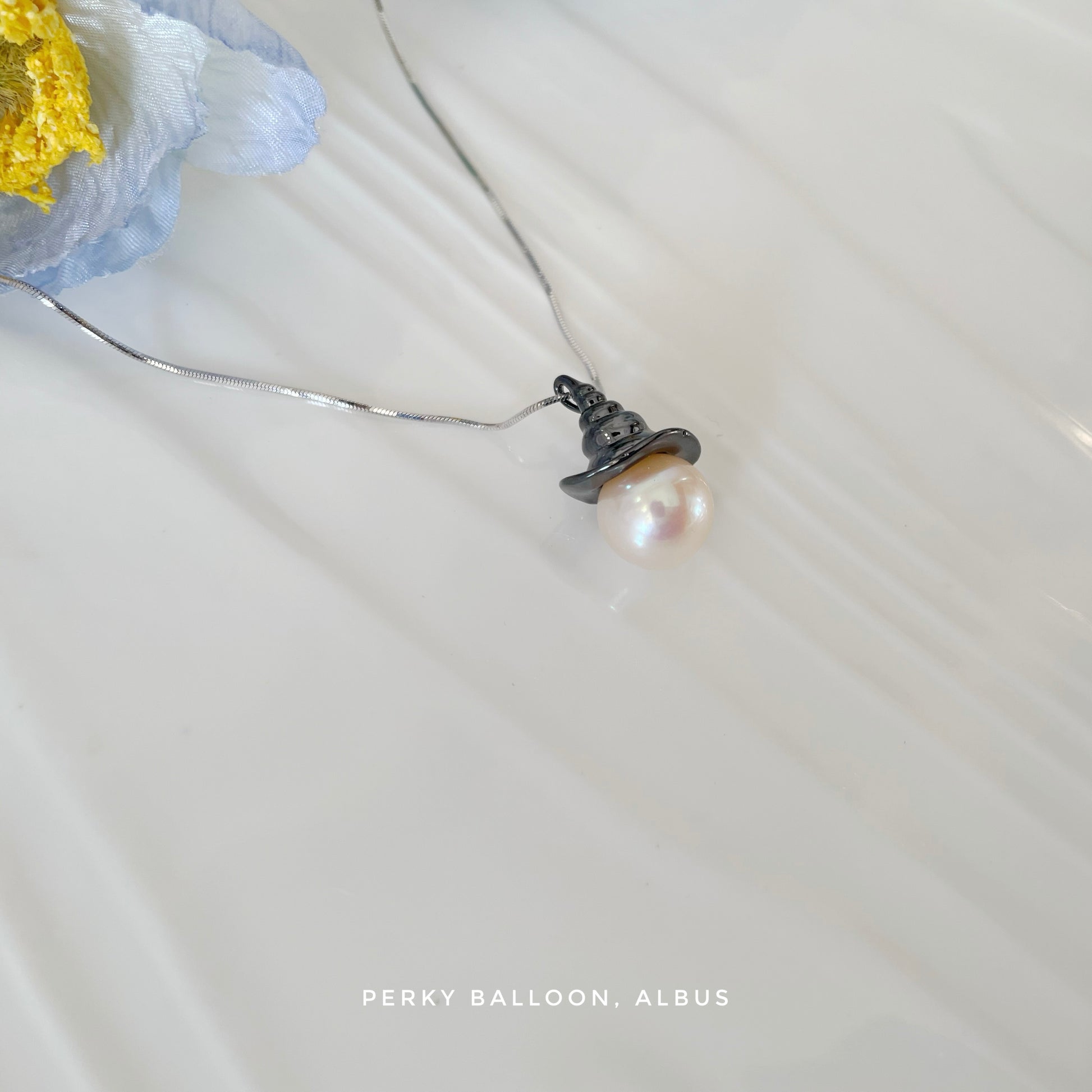 9-10mm近圓淡水珍珠,吊墜為黃銅鍍黑鋼,925純銀頸鏈,可選40或45cm