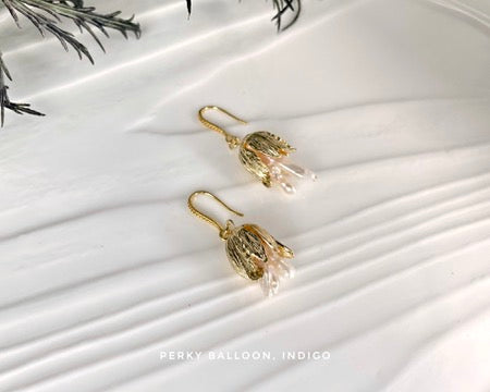 10×12 mm巴洛克淡水珍珠,黃銅鍍金鬱金香花托,花花直徑大約1.2cm,耳環長度大約4cm