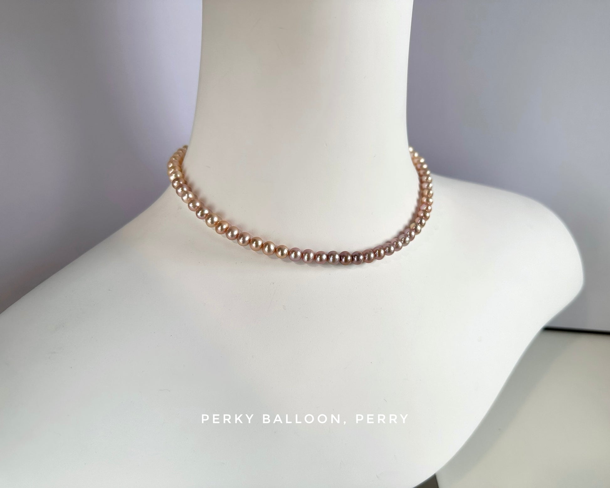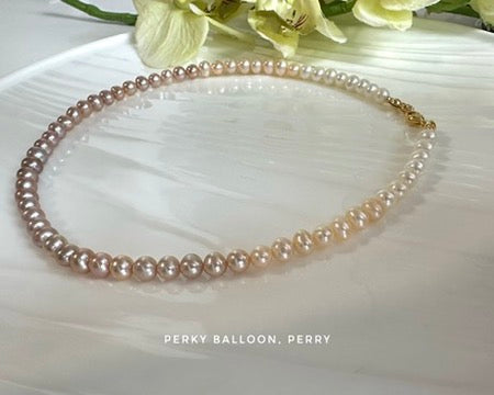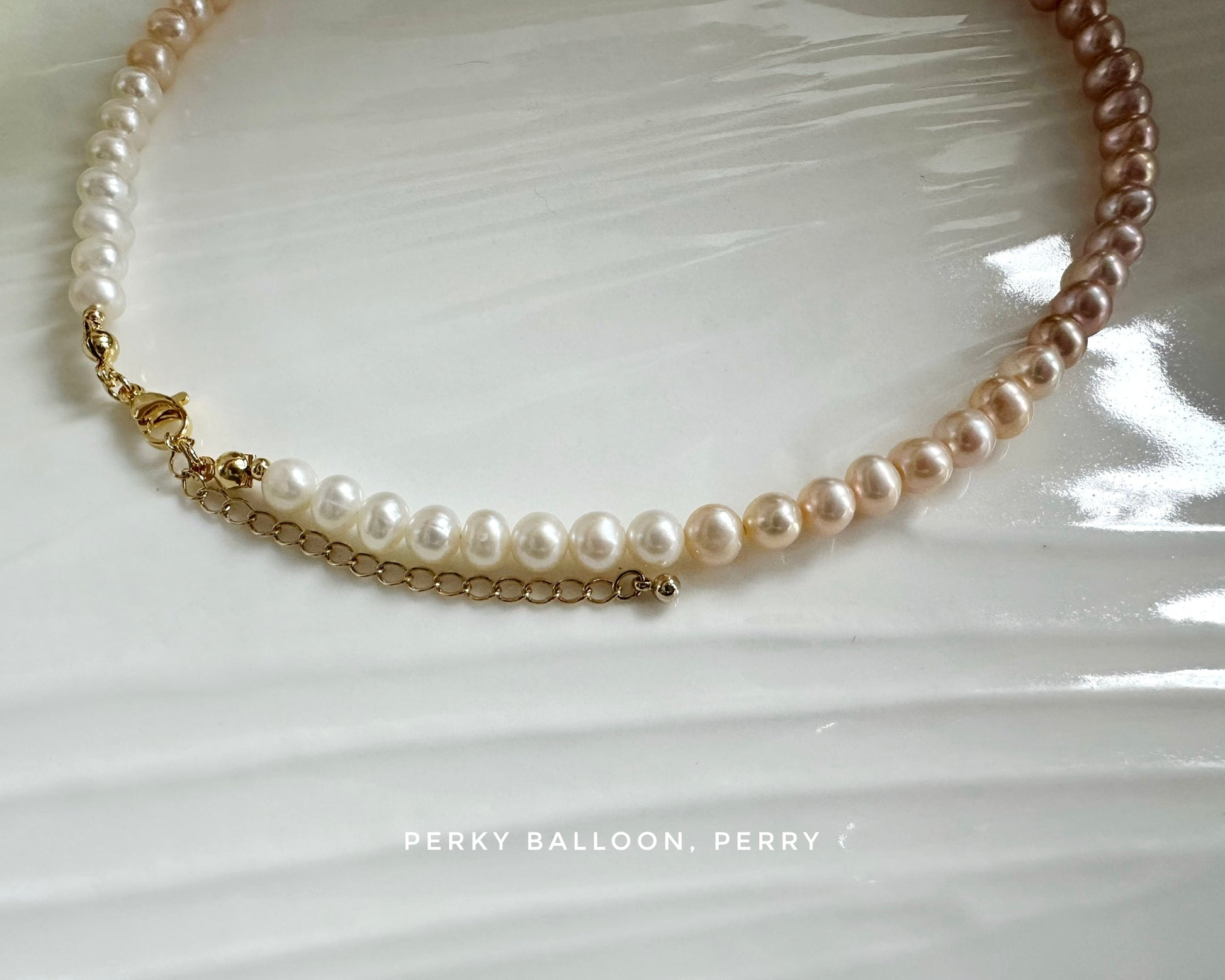 ~6mm 近圓/小橢圓淡水珍珠,彩色漸變色排列,強光,小瑕上身唔明顯,頸鏈連扣長大約38+5 cm