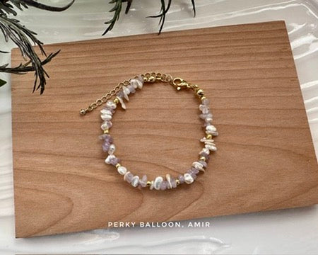 4-6mm巴洛克淡水珍珠+紫玉,春天仙氣嘅配搭,手鏈連扣長度大約15+5 cm