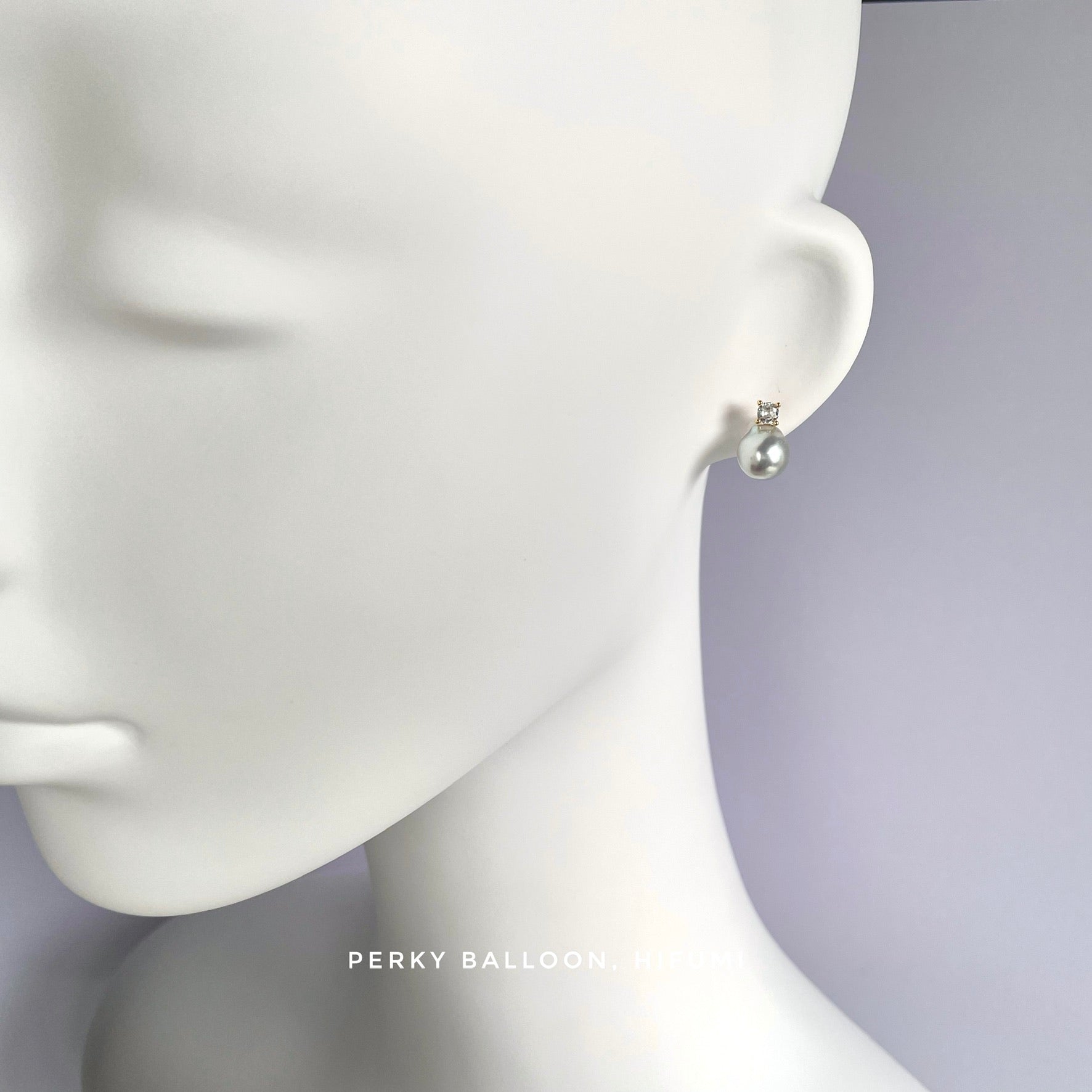 8-9 mm水滴形形巴洛克日本akoya,高級感灰藍色帶幻彩光,天然色天然色天然色 ,灰色有咁大尺寸唔容易呀🤧經典皇妃款純銀/純銀鍍金鑲鋯石耳釘,整體高度大約1.3cm