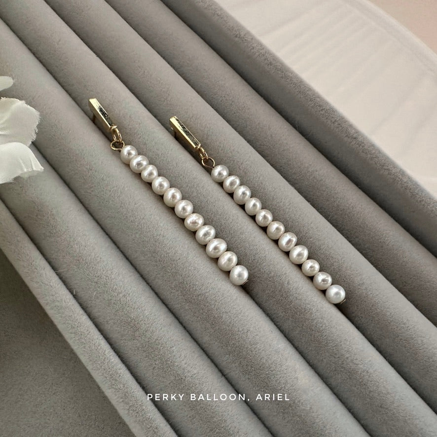 ~4mm 小橢圓淡水珍珠黃銅金耳釘,整體長度大約6cm