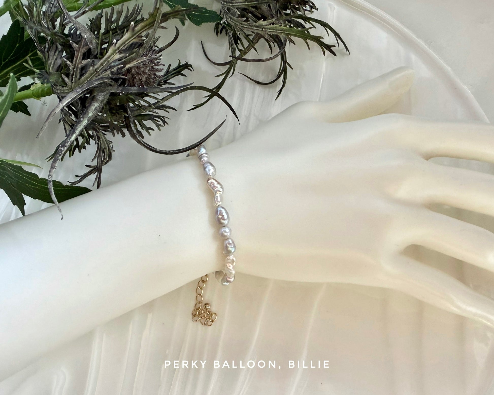 3-6 mm巴洛克淡水珍珠,天然灰色幻彩光,像極了野生珠,仲要係灰色,好罕見㗎🥹🥹🥹,手鏈連扣長約15 + 5 cm