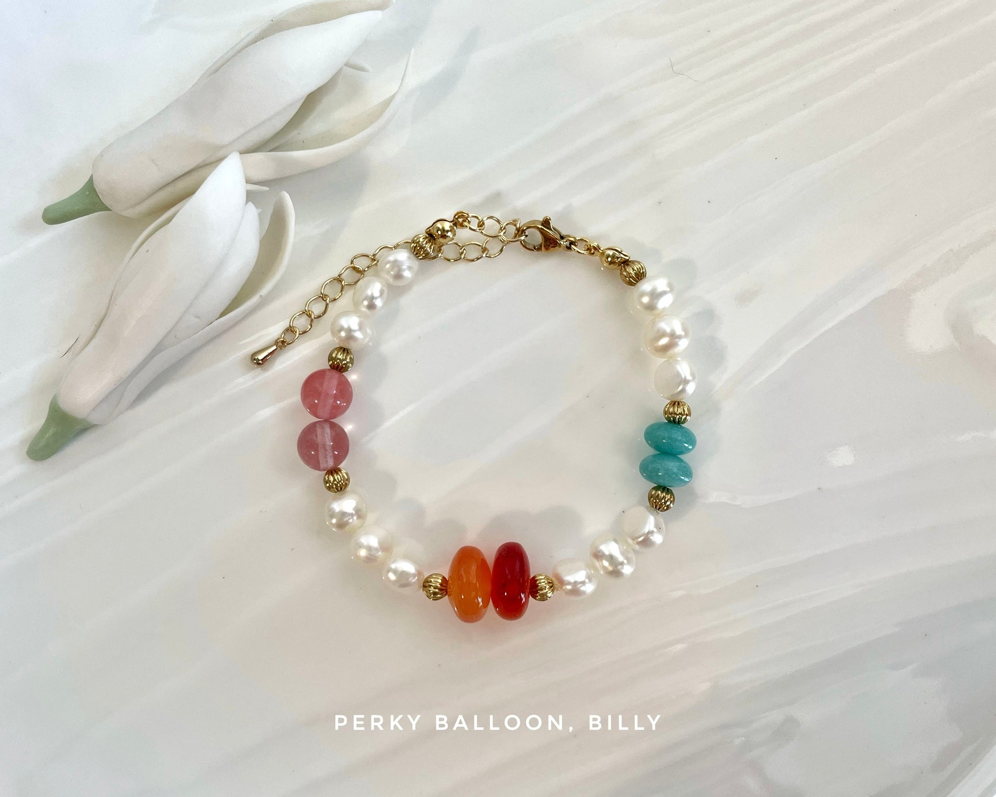7-8mm巴洛克淡水珍珠,天河石+草莓水晶+紅瑪瑙,手鍊連扣長度大約16+5 cm
