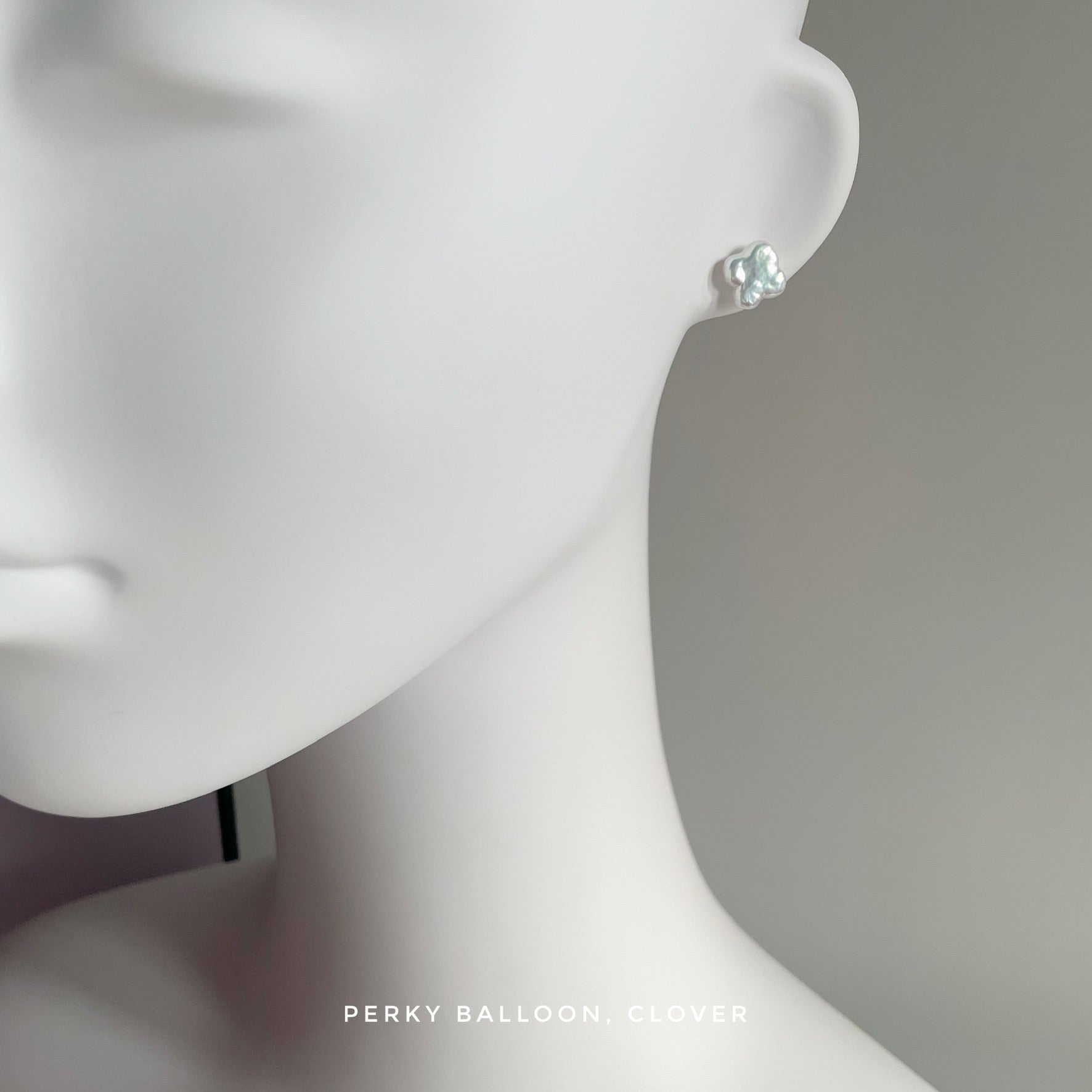 10-11mm 四葉草形狀淡水珍珠,超強幻彩光澤,上耳好精緻,配925純銀耳釘/ 黃銅鍍金螺絲耳夾