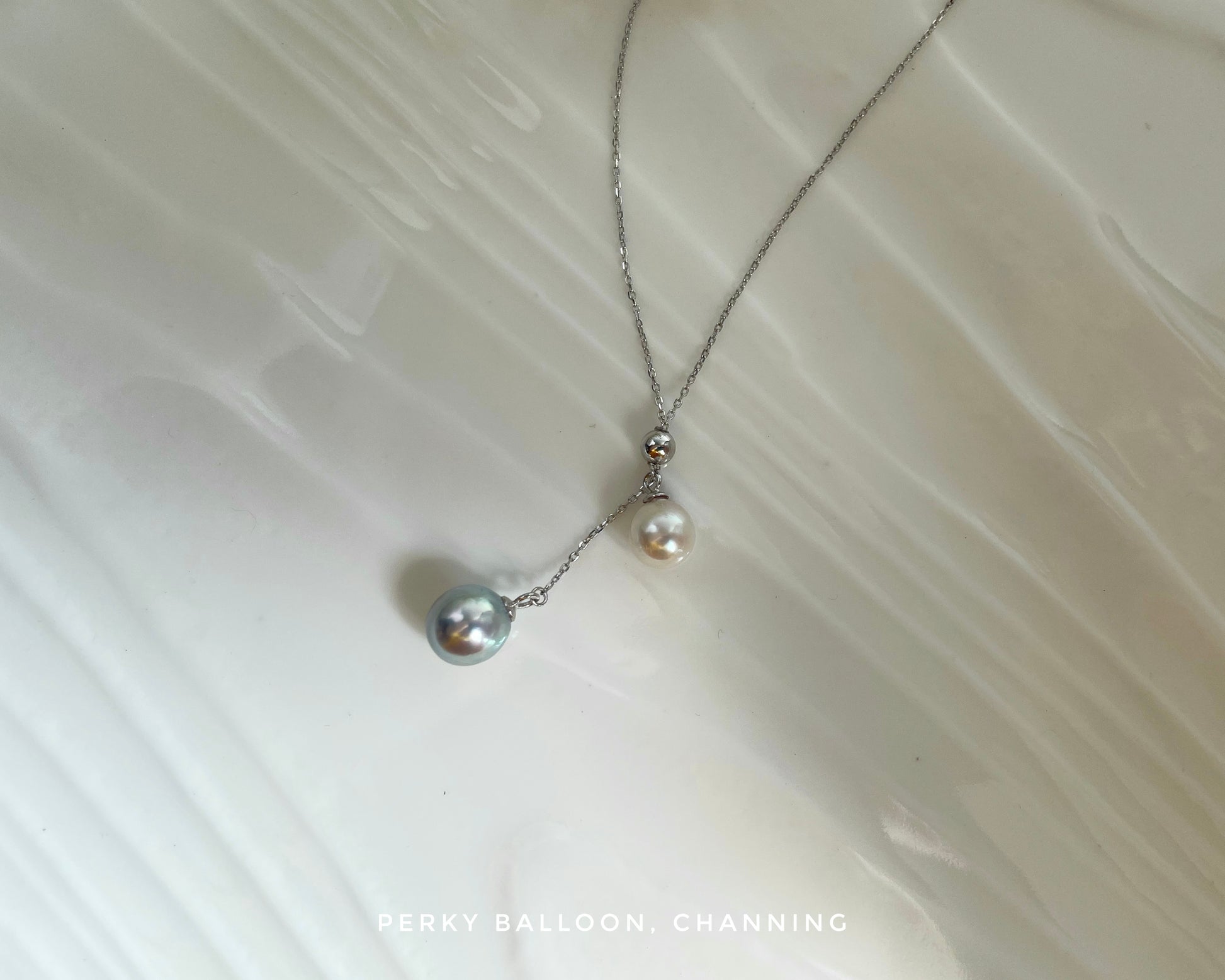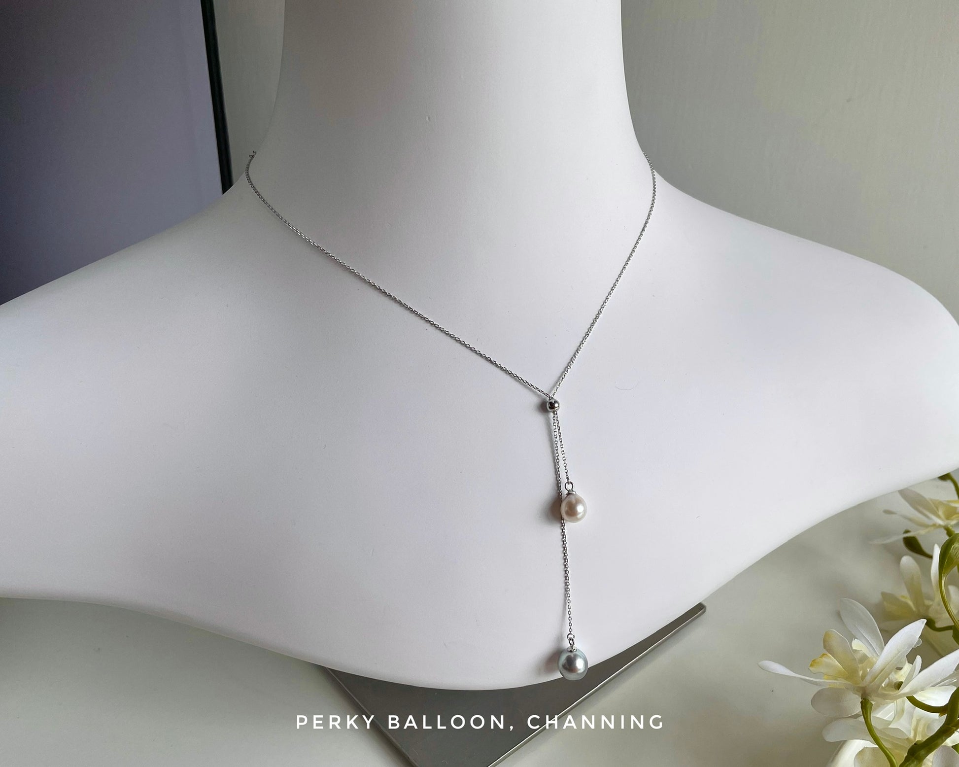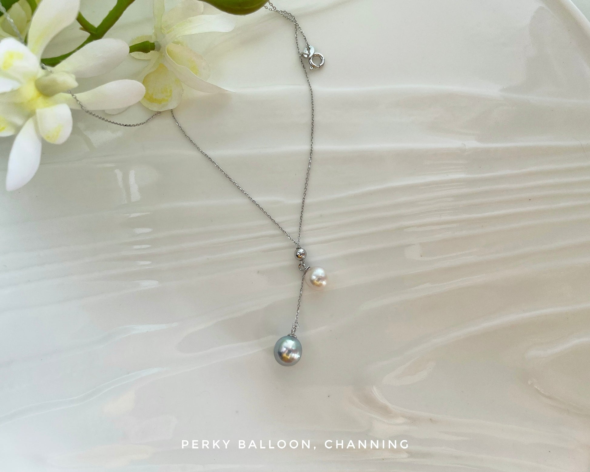7-9mm 水滴形日本Akoya ,一粒白色+一粒灰色,天然色,強光,配925純銀/純銀鍍金頸鏈,長度可自行調節40-45 cm