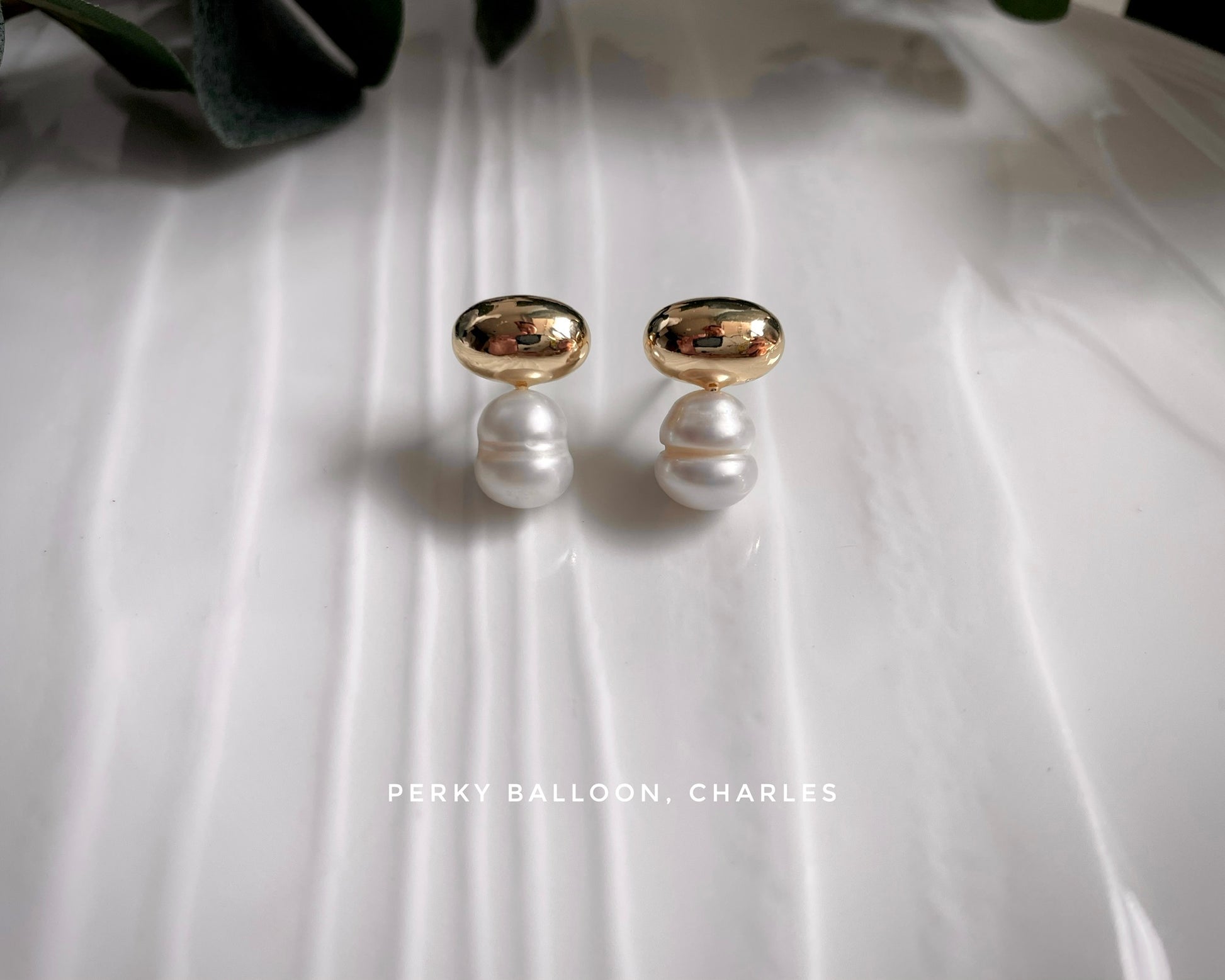 8mm水滴形淡水珍珠,18K鍍金耳釘,上面個金色波波同下面嘅珍珠好似個橫直Contrast,好特別喎!珍珠可以揀白色/橙色/紫色,上圖sample紫色,整體高約1.8cm