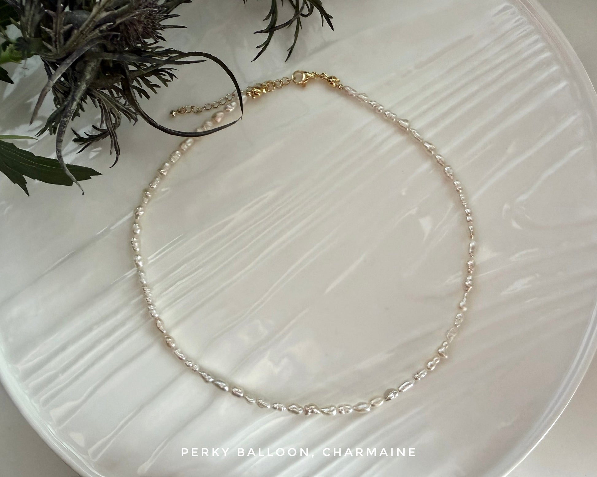 ~4mm 毛毛蟲形狀巴洛克淡水珍珠,閃亮白色帶幻彩,細細粒嘅巴洛克襯冬天冷衫特別有層次感,頸鏈長度大約38+5 cm