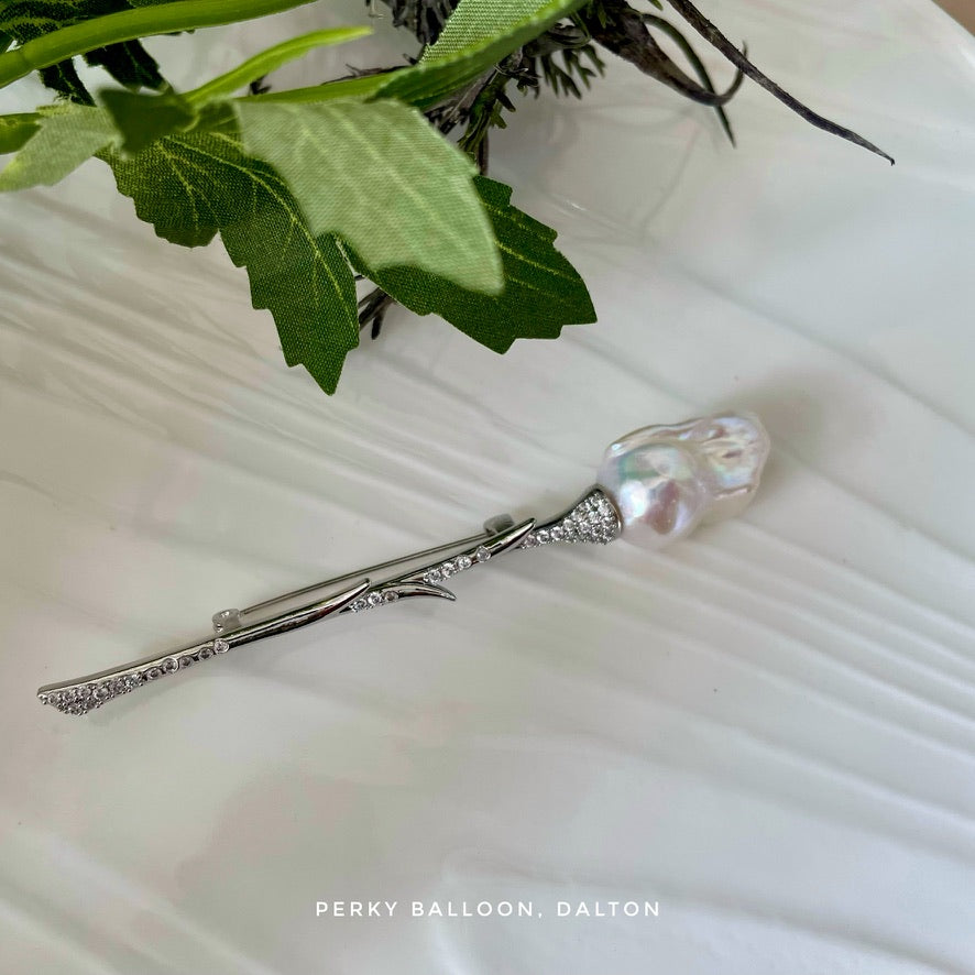 ~16x24mm 大巴洛克淡水珍珠,黃銅鍍rhodium花花心口針,整體高約10cm