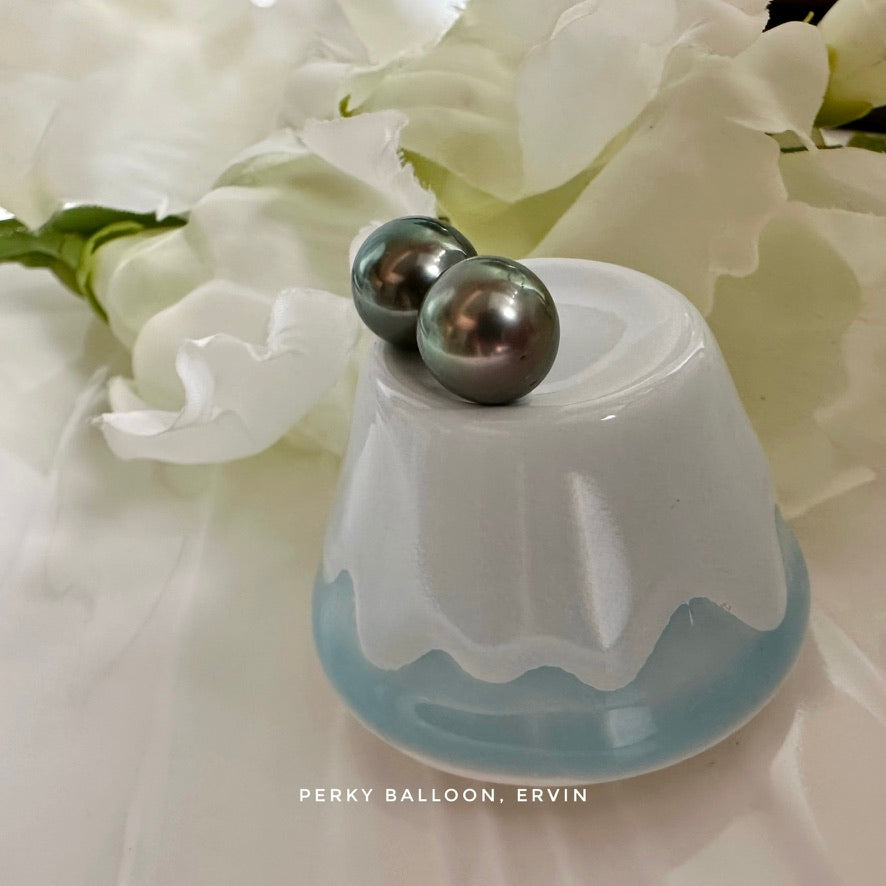 9.8 mm近圓形大溪地珍珠,孔雀綠peacock green ,強光,側底有微微瑕,左邊嗰粒正面放大鏡睇稍有不平滑,兩粒珠高度相差0.8 mm,上耳唔明顯,配925純銀耳针/ 黃銅鍍金螺絲耳夾