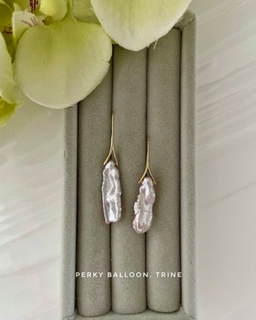 7 ×25 mm巴洛克淡水珍珠,黃銅鍍金耳勾,整體高約4.5cm