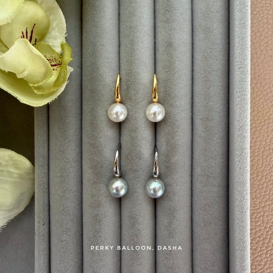 7-7.5mm 近正圓日本Akoya,無瑕/近無瑕,極緻鏡面光,淡雅高貴嘅款,珍珠可以揀白色/淺灰藍色,925純銀/純銀鍍金耳釘,整體高度大約1.5cm