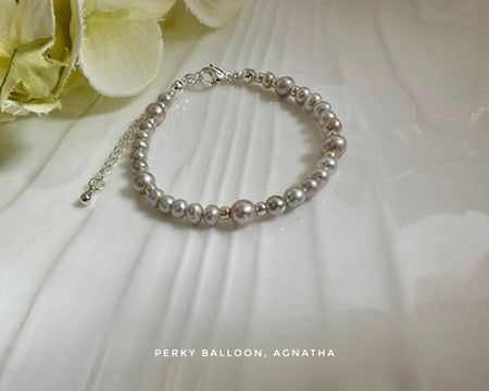 4-6mm近圓形巴洛克淡水珍珠,天然高級感紫灰色手鏈,強光小瑕,連扣長度大約15+5 cm