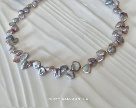 8-9mm 花瓣形淡水珍珠,淺紫色帶藍光,極fancy罕有色,頸鏈連扣長約38+5 cm