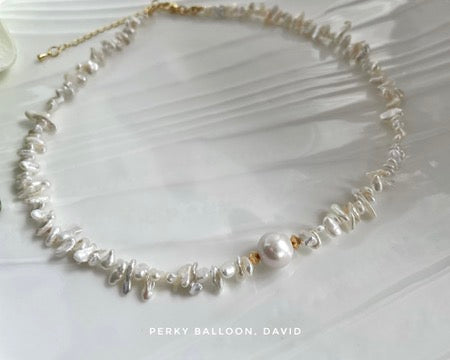 3-5 mm巴洛克+10 mm近圓淡水珍珠,頸鏈連扣長約38+5 cm