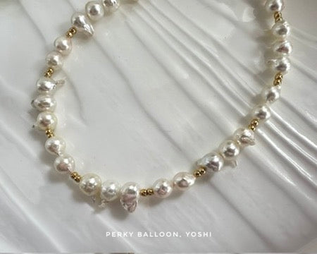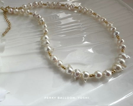 7-9 mm巴洛克日本Akoya,天然白色幻彩,中間嘅天然金魚仔增添年輕感,playful易襯嘅款,頸鏈連扣約42cm