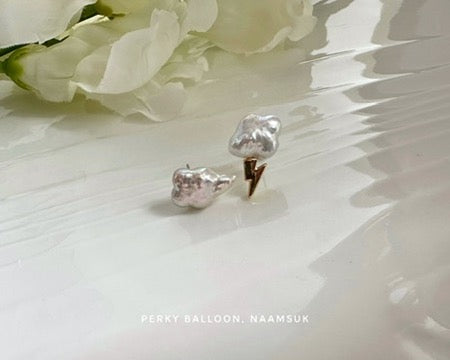 ~10x14mm 一嚿雲淡水珍珠,白色金屬幻彩,銅鍍金小閃電,好得意呀媽咪!配925純銀耳釘/ 黃銅鍍金螺絲耳夾(默認金色)