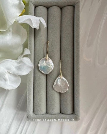 ~15mm花瓣形淡水珍珠,黃銅鍍金耳勾,整體長度大約3cm