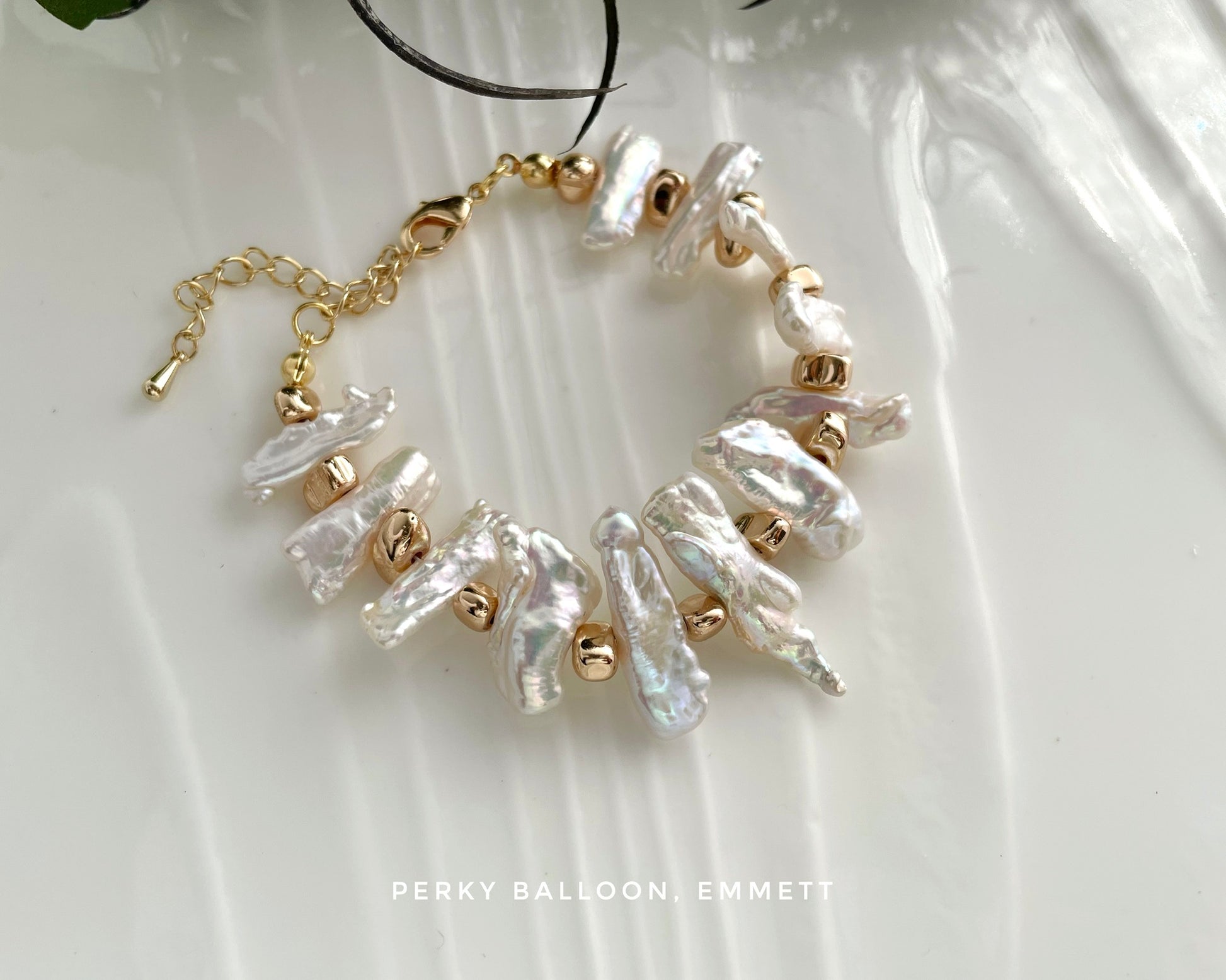 7x14mm 巴洛克淡水珍珠,超靚金屬幻彩光澤,statement piece 手鏈,長度大約15 +5 cm