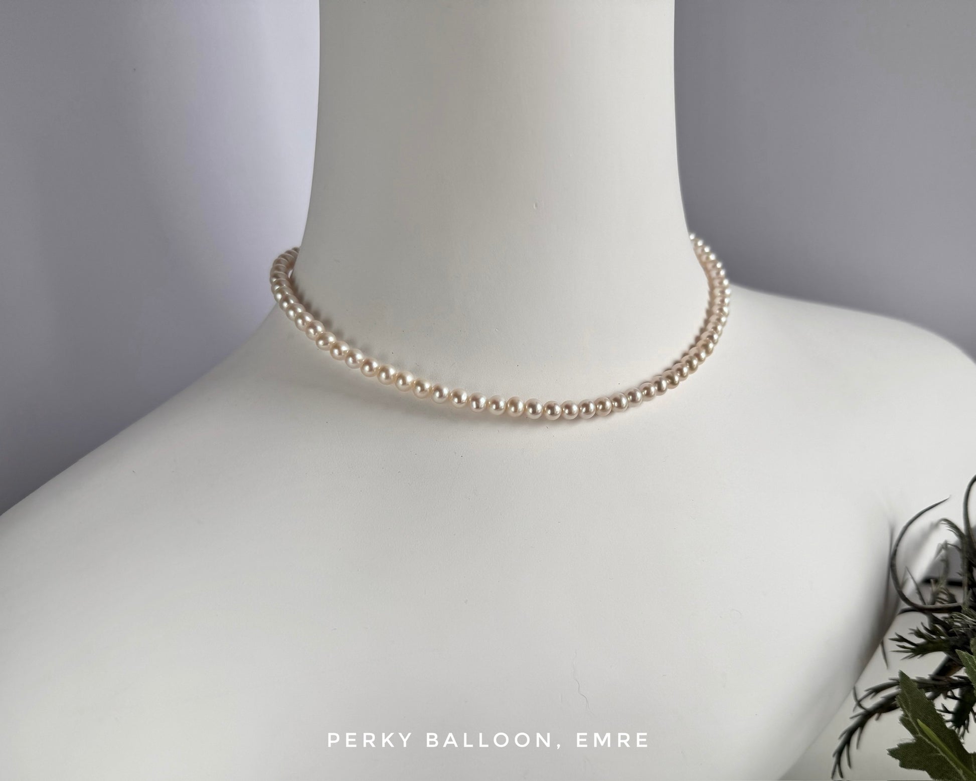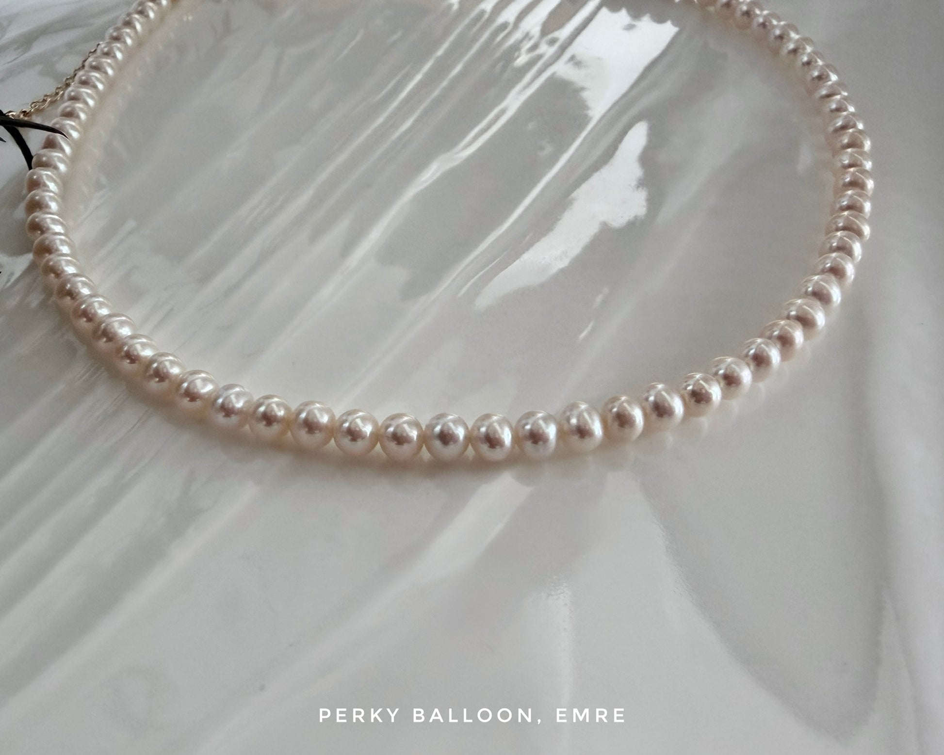 5 mm 近圓形淡水珍珠,無瑕,天然白透粉紅色,無敵鏡面極光,上身效果清雅秀氣,頸鏈連扣長度大約38+5 cm