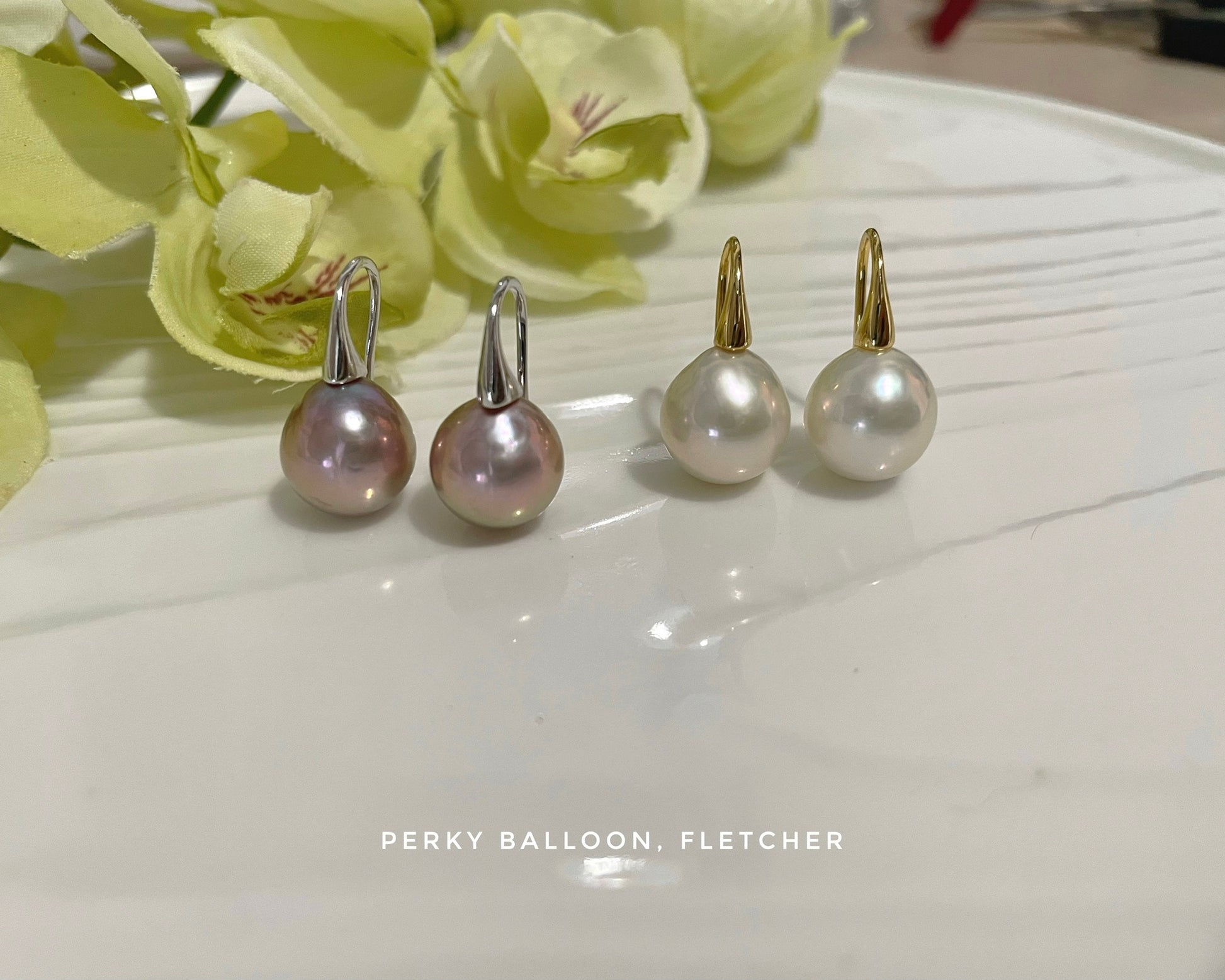 11-12mm 水滴形巴洛克淡水珍珠,珍珠可以揀白色/紫色,925純銀/純銀鍍金耳勾,整體高約2cm