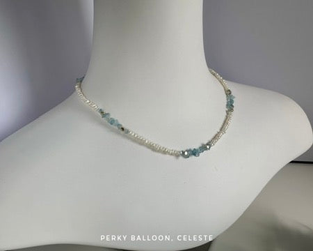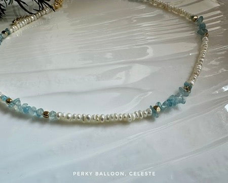 4-5mm 巴洛克淡水珍珠,海藍寶,飄逸住夏天嘅海洋味道,頸鏈連扣長度大約45 cm