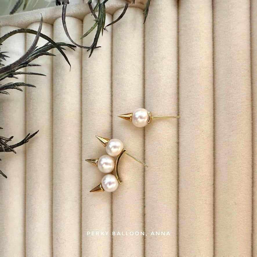 7.5-8 mm近圓淡水珍珠,925銀鍍金左右鴛鴦款耳釘,溫柔嘅珍珠配反叛嘅造型😜整體高度大約2.5 cm