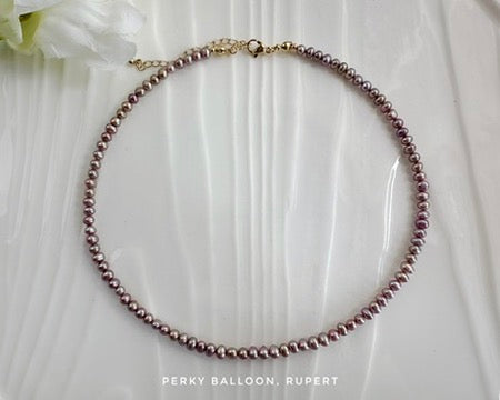 4.5-5 mm橢圓形淡水珍珠,天然深紫色,帶藍綠色幻彩,好少有咁樣嘅幻彩色🥹頸鏈連扣長度大約38+5 cm
