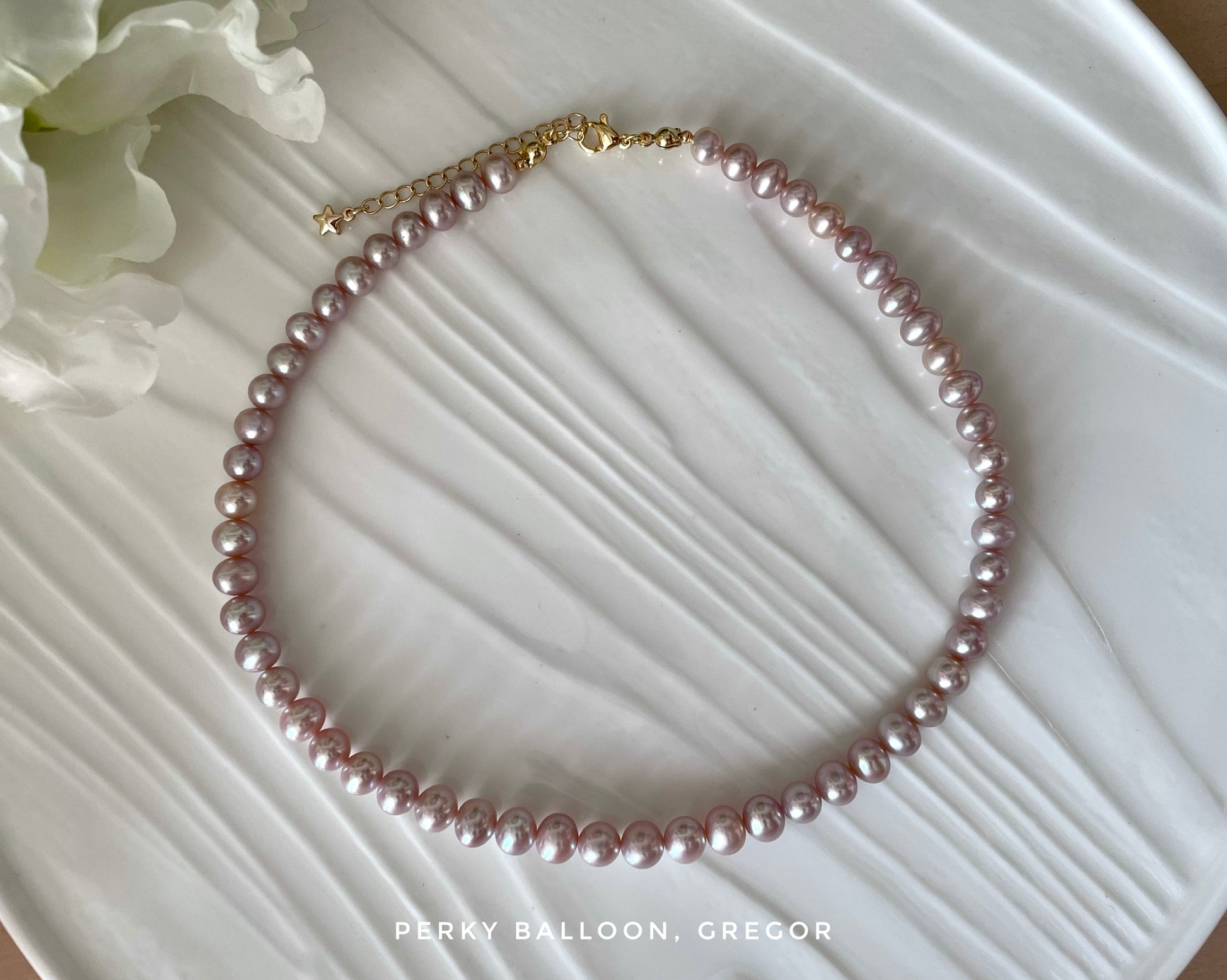 6.5-7.5mm 近圓/小橢圓形淡水珍珠,粒粒鏡面極光,無瑕/近無瑕,其實我睇唔到瑕🙈真心高品質嘅珠珠,上圖sample 仙女紫色,頸鏈連扣長約38+5 cm