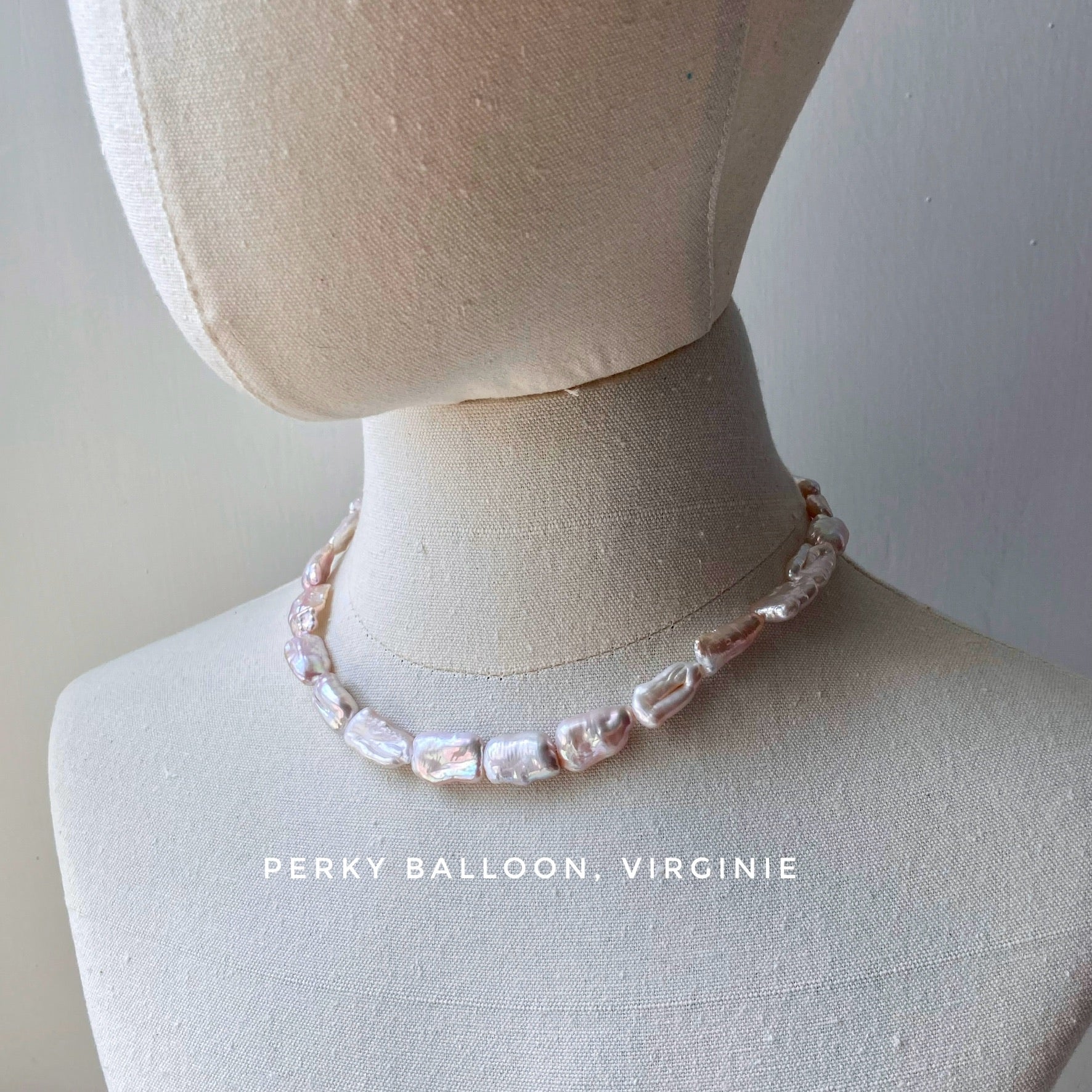 粗獷造型10x16mm巴洛克淡水珍珠,珍珠白色帶粉紅彩光,長形款嘅巴洛克配T恤當然合適,配正經嘅恤衫套裝會增添青春感覺,即刻有型咗💗頸鏈連扣大約41+5cm