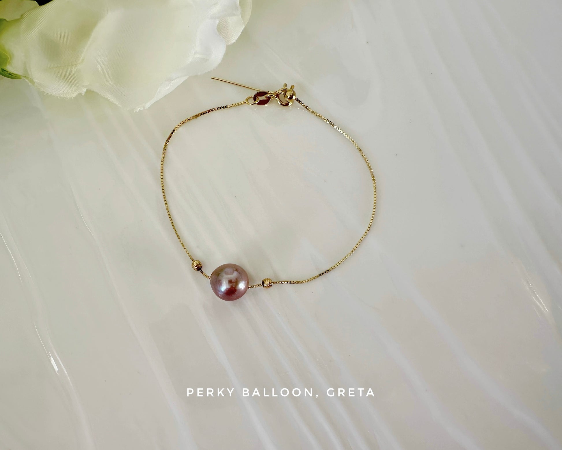 ~9mm近圓形淡水珍珠,珍珠可選白色/橙色/紫色,上圖sample紫色,925純銀/純銀鍍金手鏈,可選金色/銀色,針鏈設計可以隨意加減更換珍珠,長度可以調節,max 17 cm
