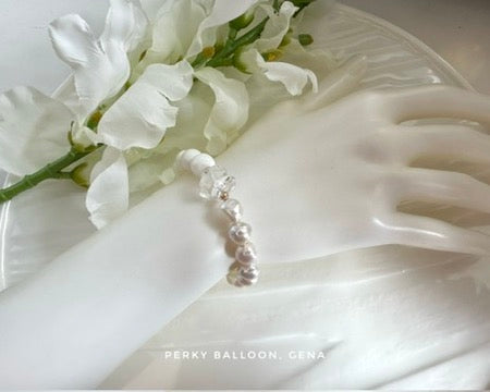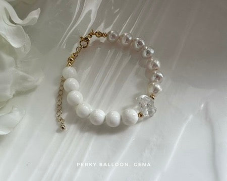 7-8mm巴洛克淡水珍珠+貝殼珠+白水晶,唔同質感嘅白嘅組合,手鏈連扣長度大約15+5 cm