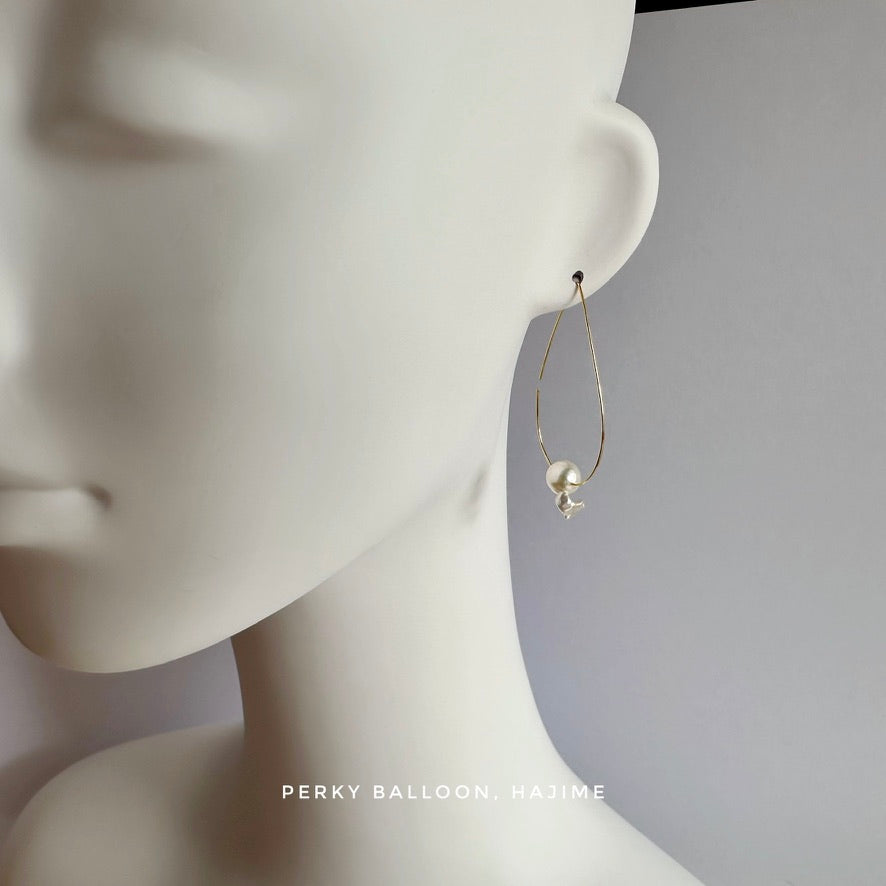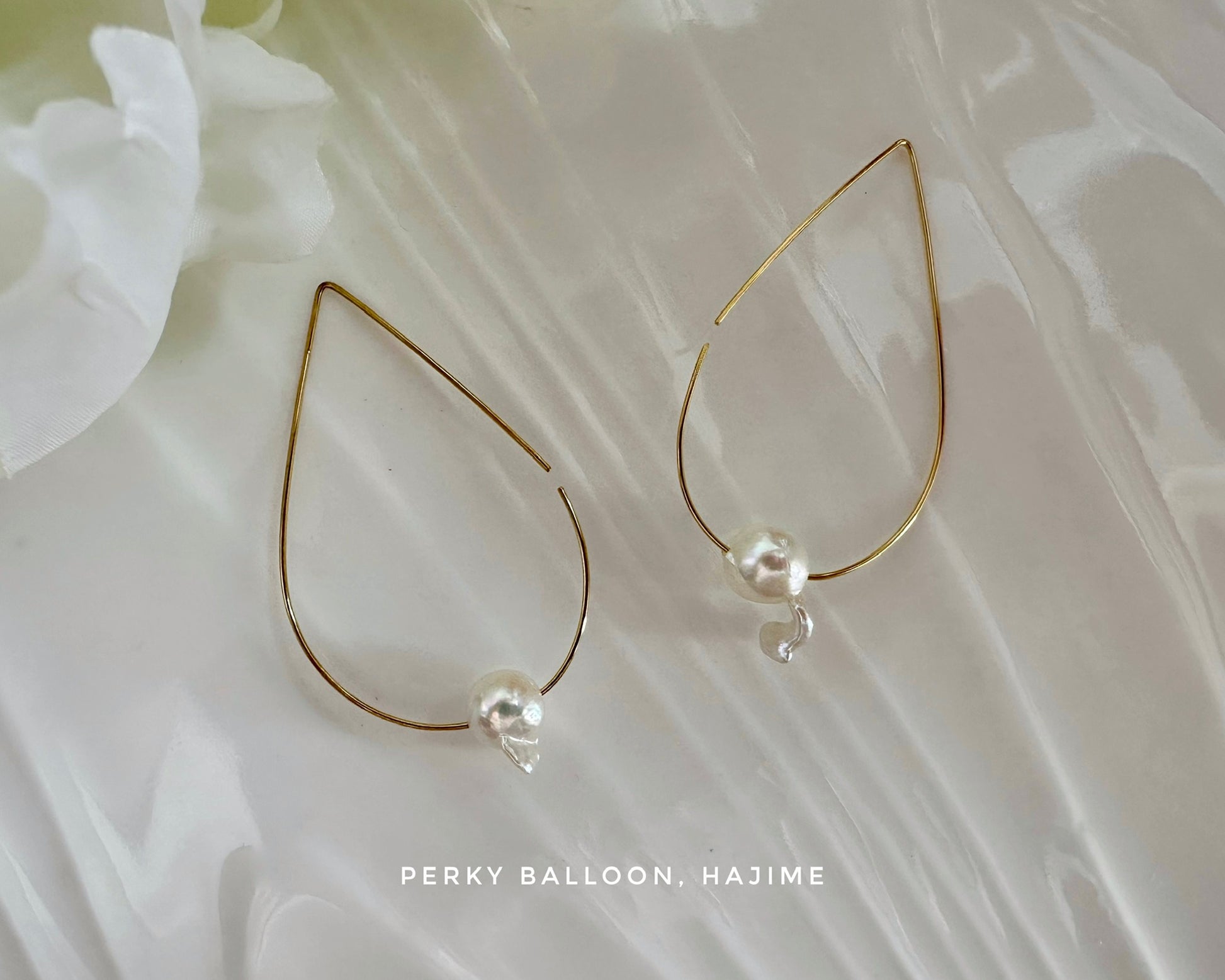 8-9mm金魚尾巴日本Akoya,罕有天然形狀,黃銅鍍金水滴耳勾,整體長度大約5cm