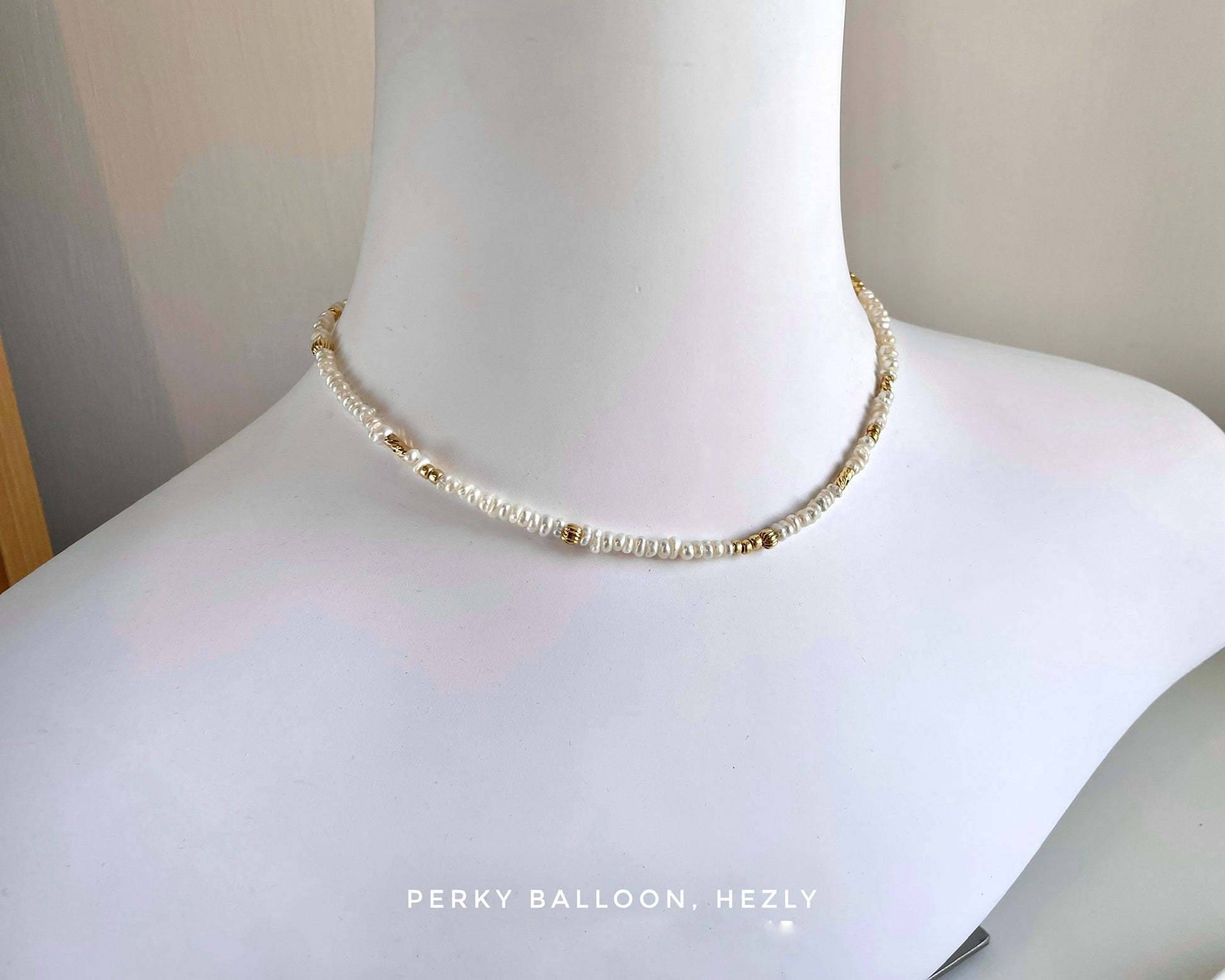 4-4.5 mm巴洛克淡水珍珠,中間珠仔係黃銅鍍金珠+玻璃珠,頸鏈連扣長大約38+5 cm,單戴疊戴都咁正😆😆
