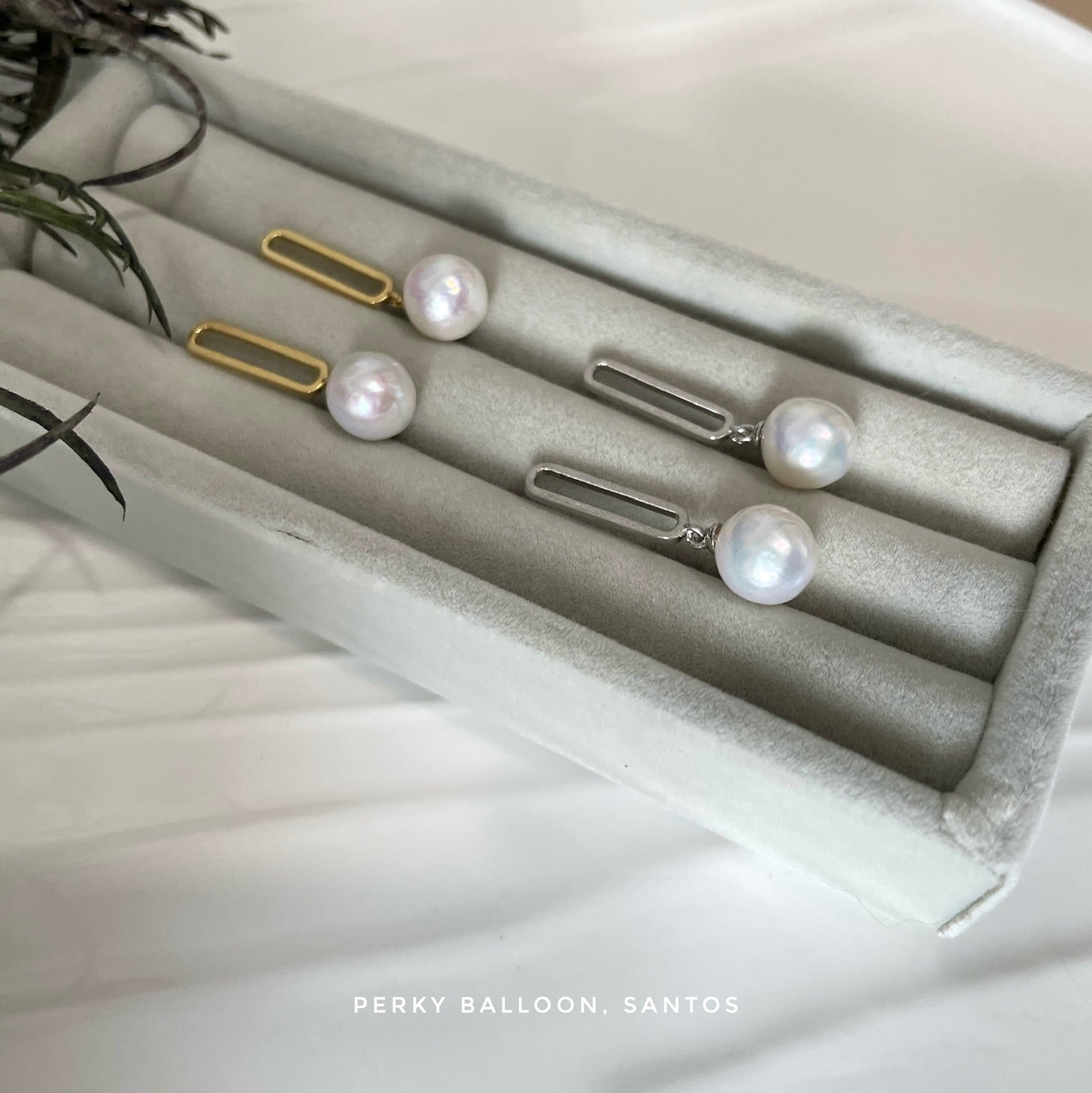 8-9mm近圓形巴洛克淡水珍珠,超靚嘅白色透幻彩光,925純銀/純銀鍍金耳釘,整體總長約2.7cm