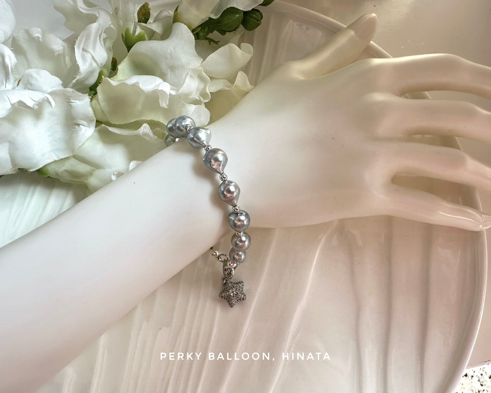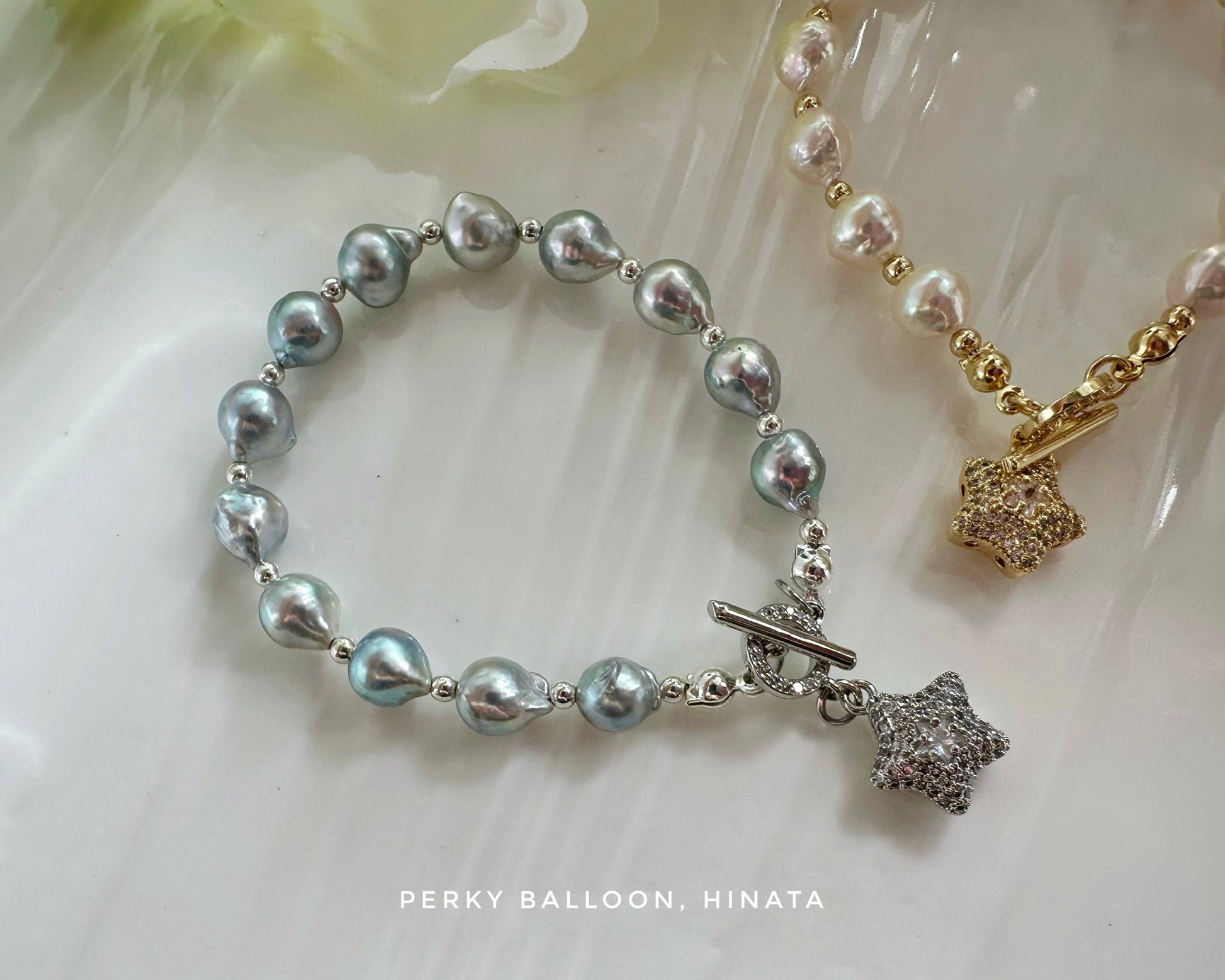 7-8mm 巴洛克日本 Akoya,天然藍光灰色/彩光白色,白色形狀會比灰色稍圓,星星扣同埋隔珠配件可以揀金色/銀色,手鏈連扣適合15cm手圈