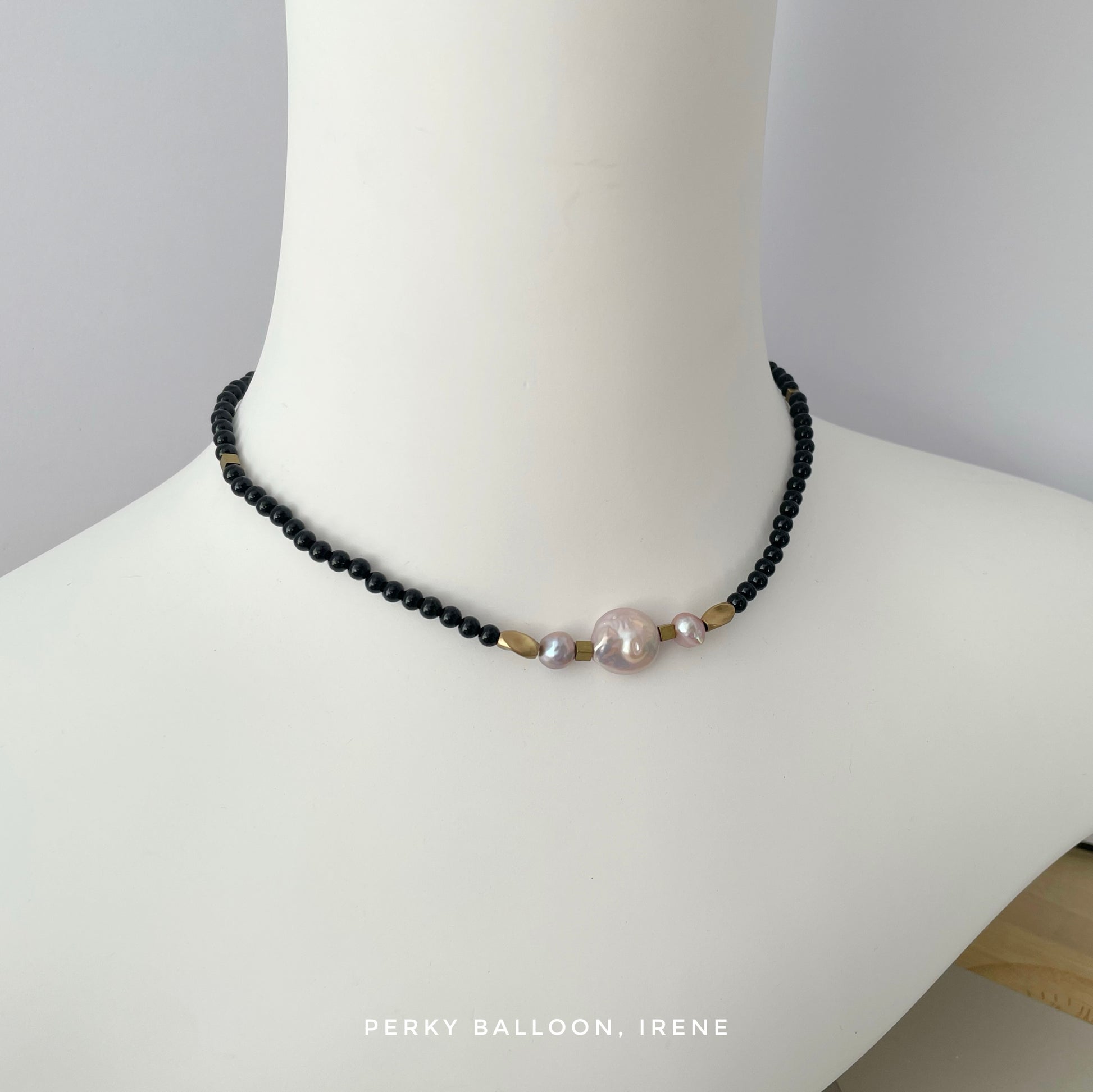 7-12mm 巴洛克淡水珍珠+黑瑪瑙,頸鏈連扣長約40+5 cm