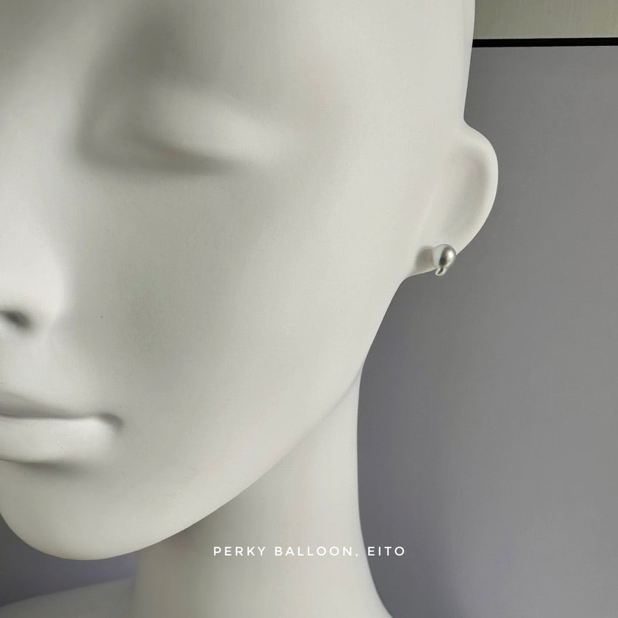 7-8mm 巴洛克日本Akoya天然灰藍色,天然逗號仔形狀,上耳極得意,配925純銀耳釘/ 黃銅鍍金螺絲耳夾