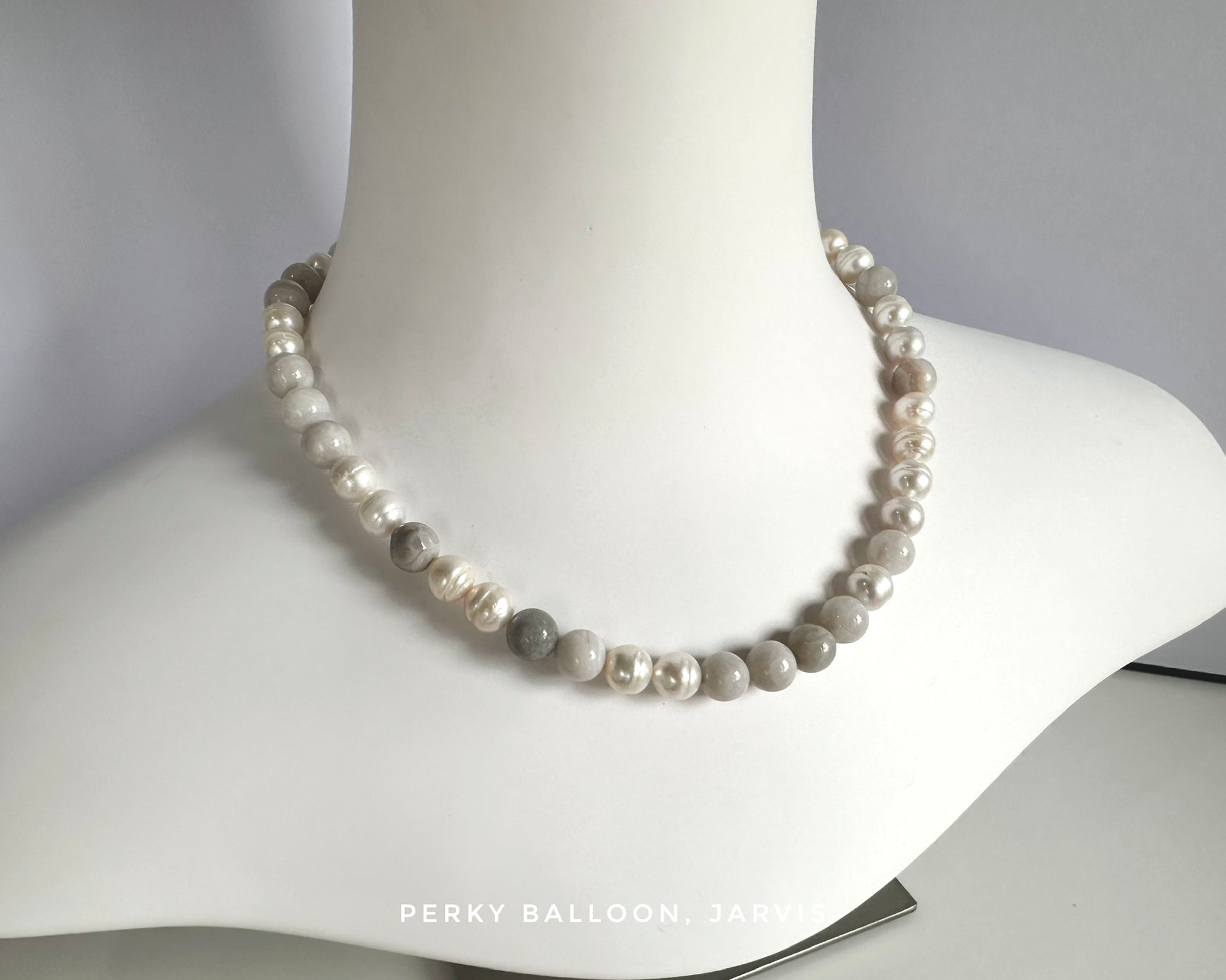 9-10mm巴洛克淡水珍珠,灰瑪瑙,頸鏈連扣長約45+5cm