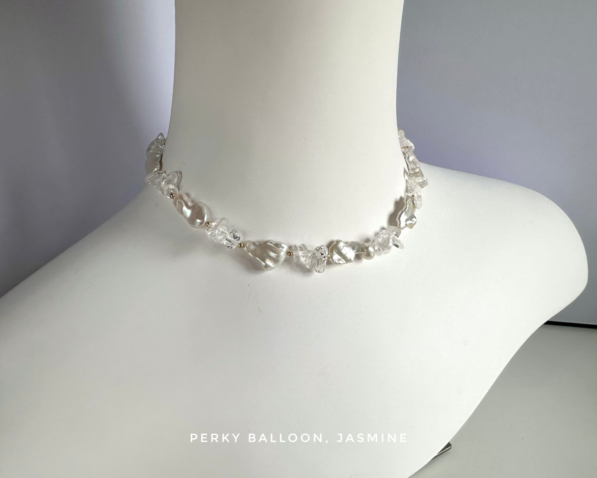 8-10mm 巴洛克淡水珍珠+ 白水晶,頸鏈連扣長約40+5 cm