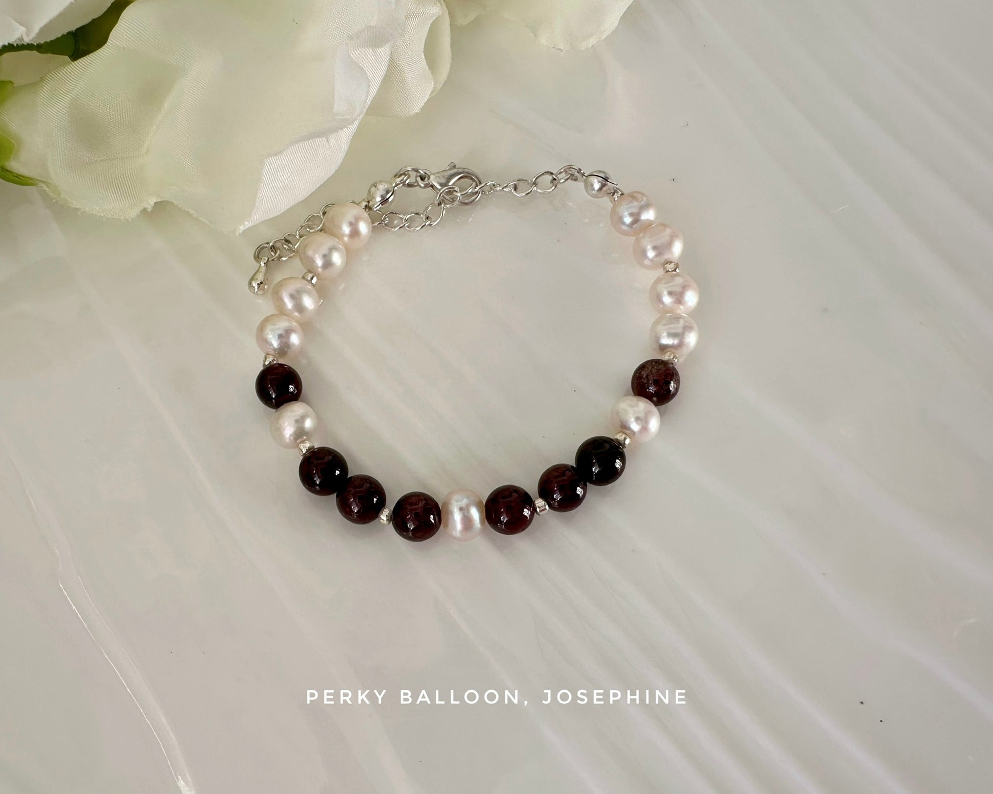 6.5-7mm近圓形淡水珍珠+石榴石,手鏈連扣長大約15+5 cm