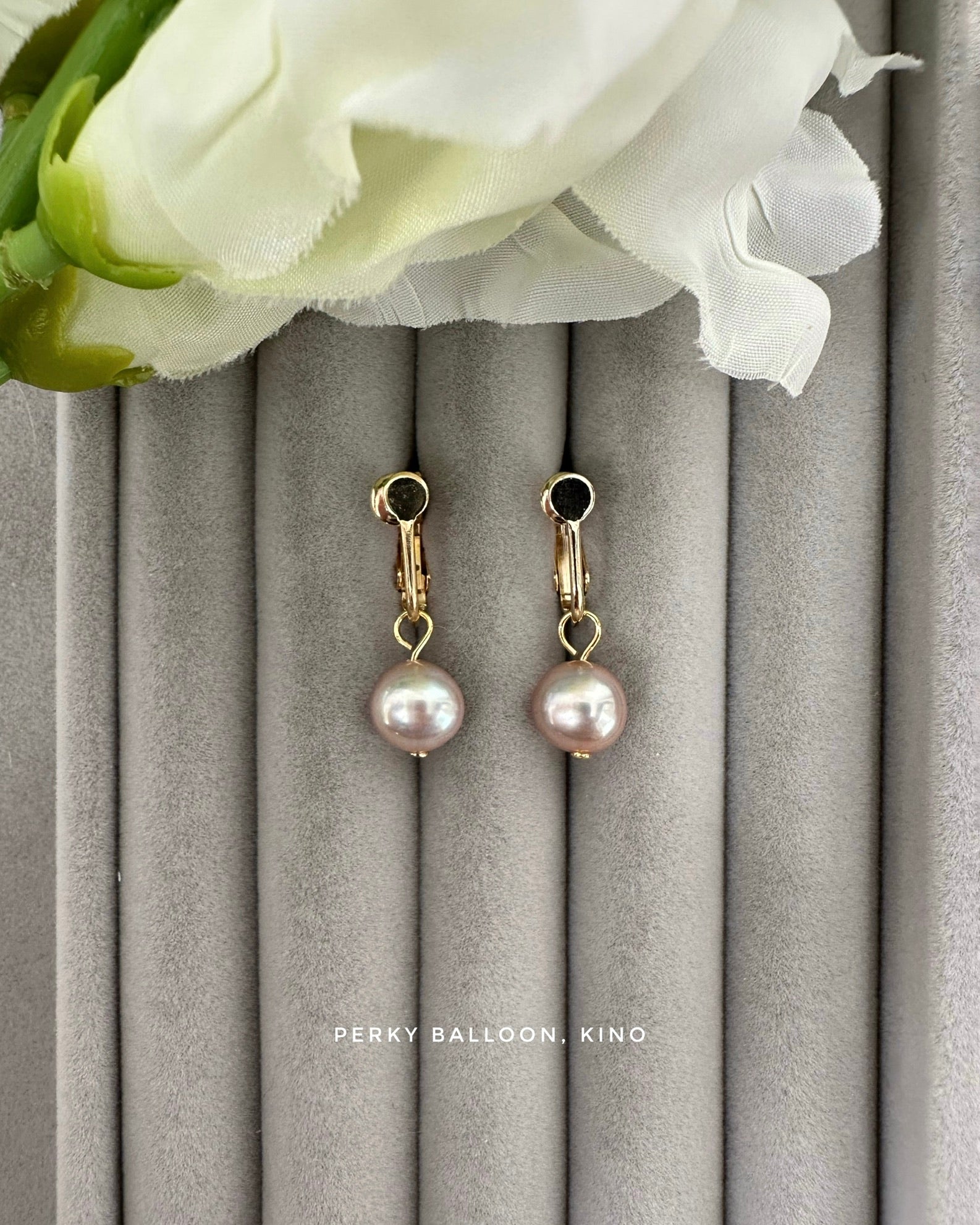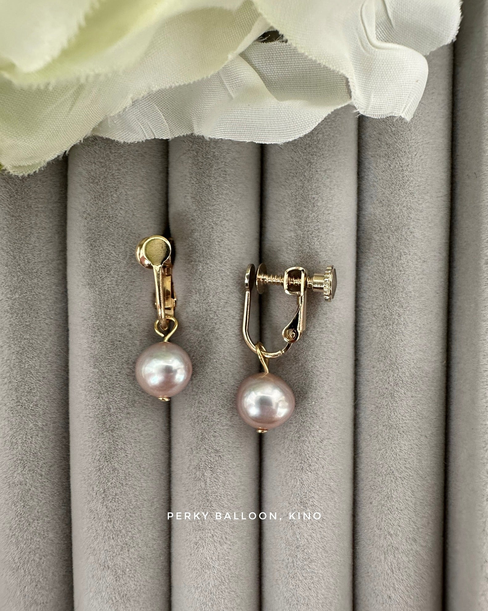 7.5-8mm近圓形淡水珍珠,可選白色/橙色/粉紫色,上圖sample粉紫色,黃銅鍍金螺絲耳夾,可選金色/銀色,整體長度大約2.2 cm