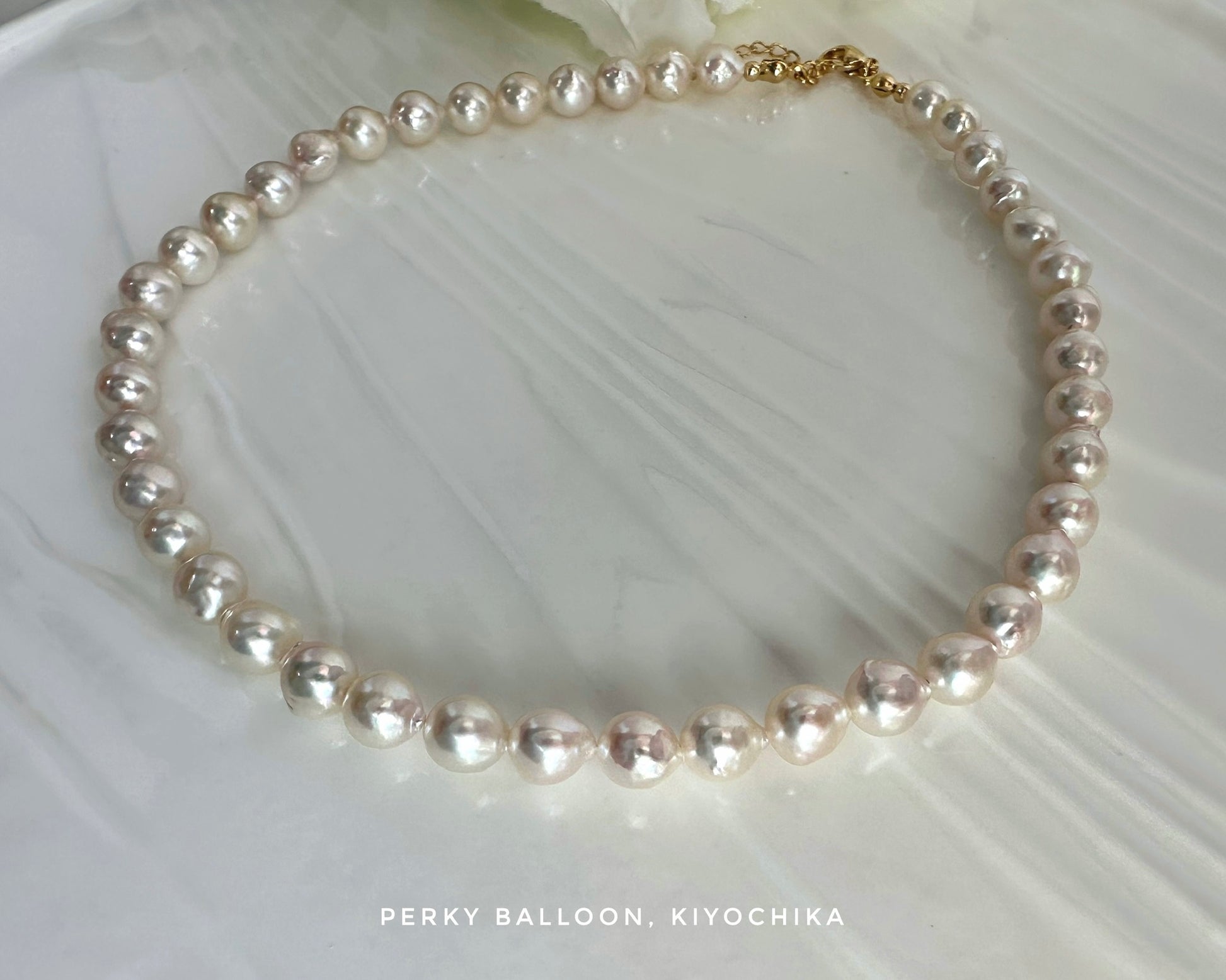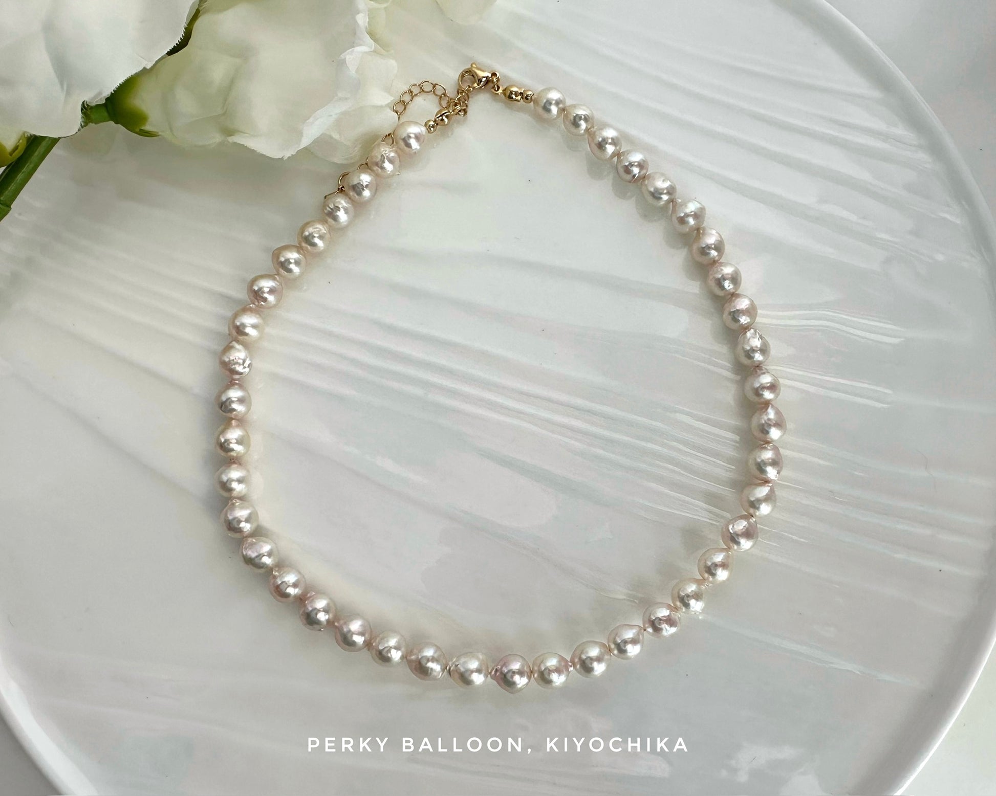7.5-8mm 水滴形巴洛克日本Akoya,白透粉色幻彩極光,珠層厚,皮光好潤,天花板光澤真心無敵冇得輸,好似發緊光咁靚,水滴形比圓珠仲chill😎頸鏈連扣長約40 + 5cm