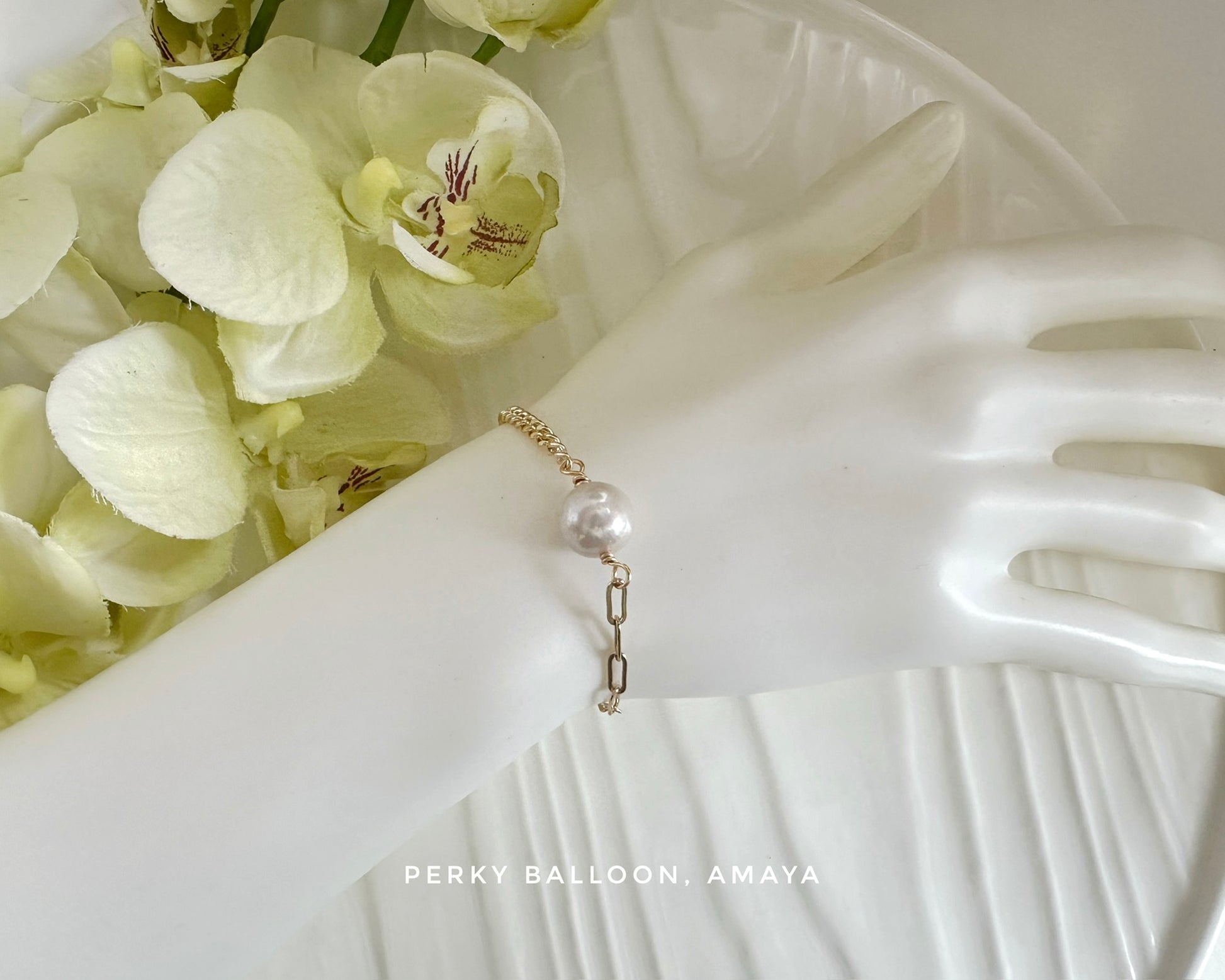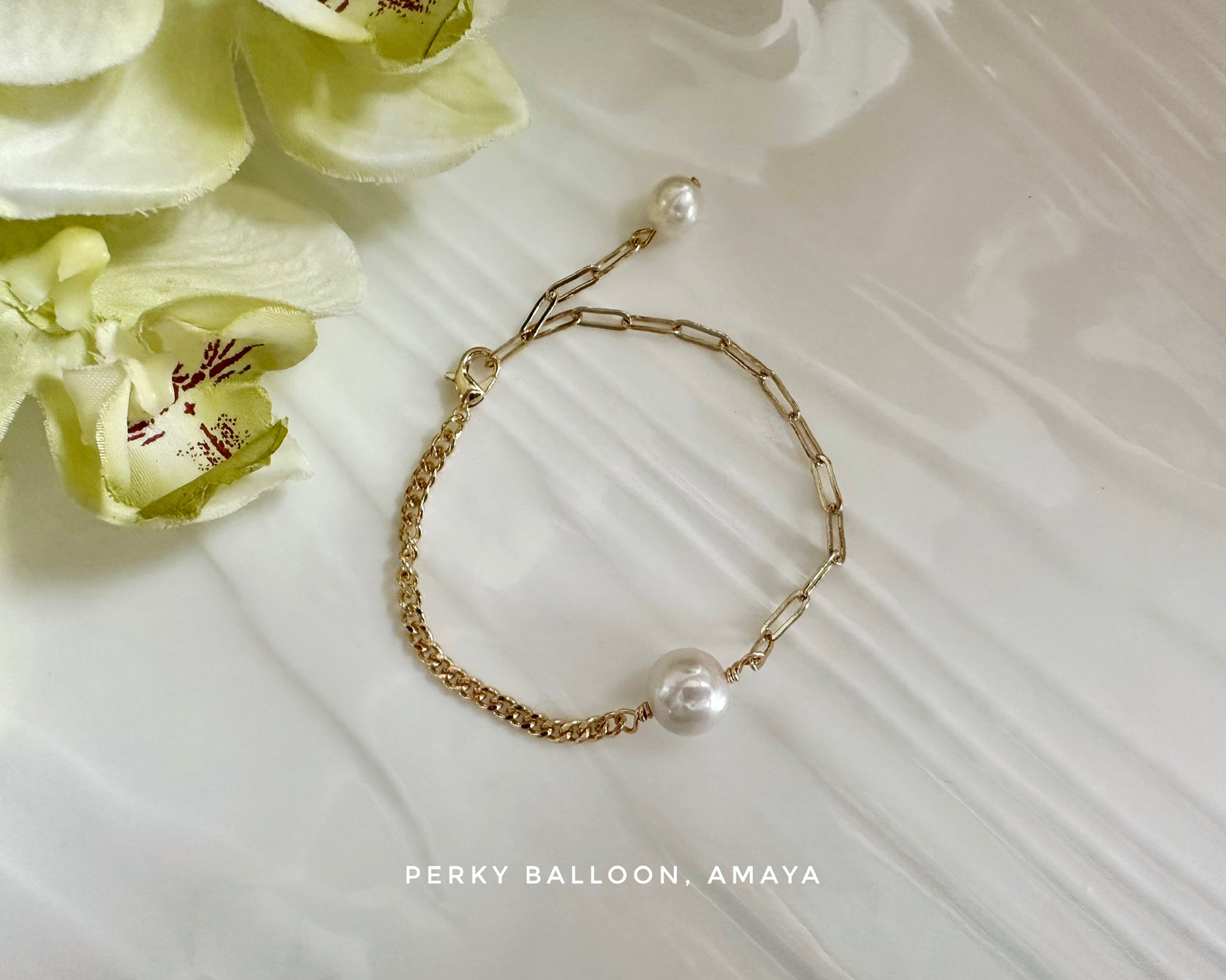 10 mm 近圓形淡水珍珠,強光小瑕,黃銅鍍金左石鴛鴦手鏈,連扣長度可以自由扣,Max 18cm