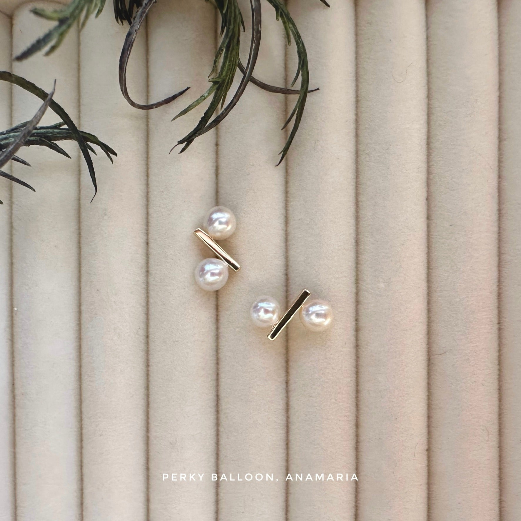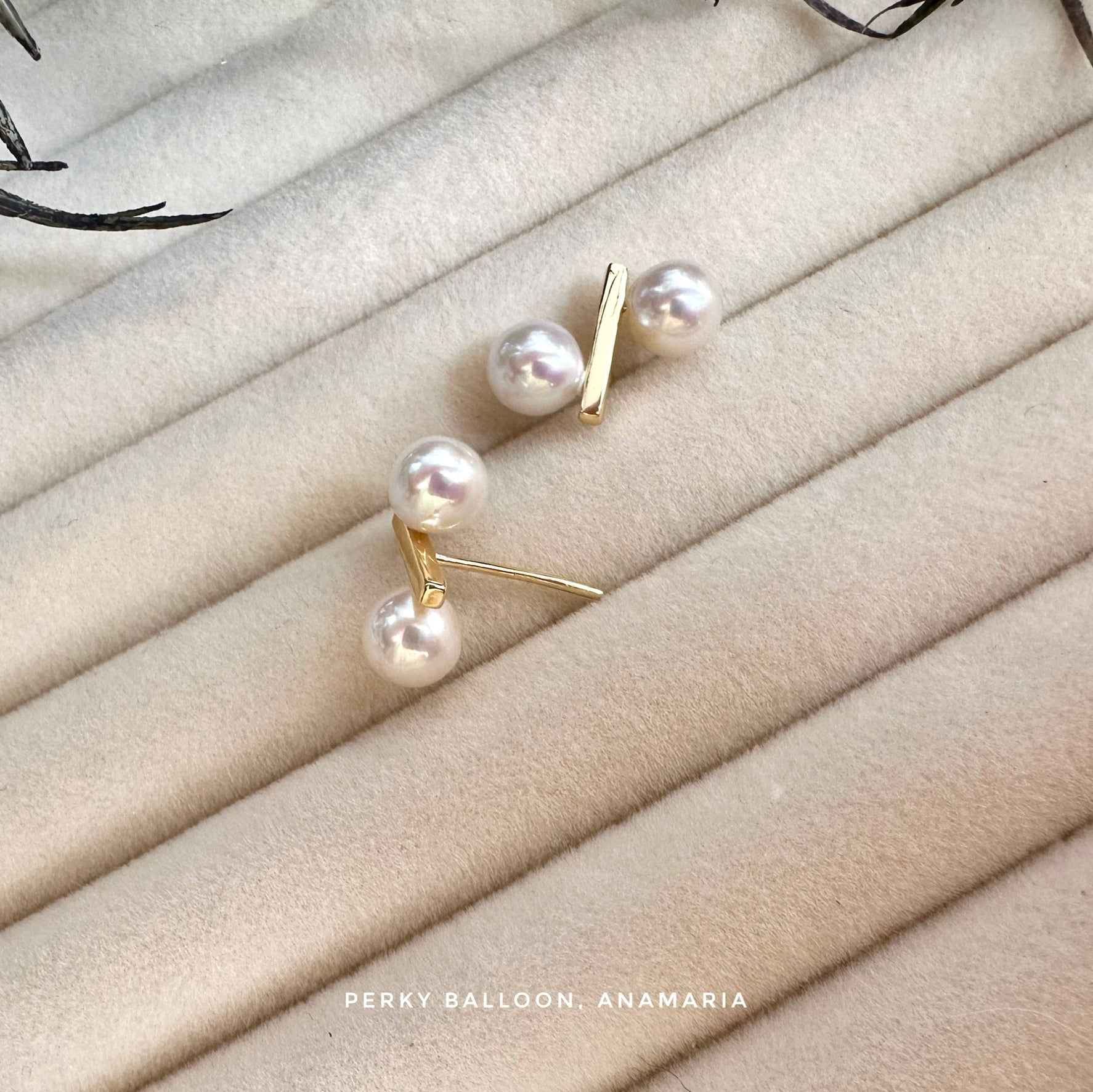 ~6mm近圓形淡水珍珠,925純銀鍍金耳釘,戴上耳係斜斜地咁樣嘅%符號,效果好得意,整體高度大約1.2 cm