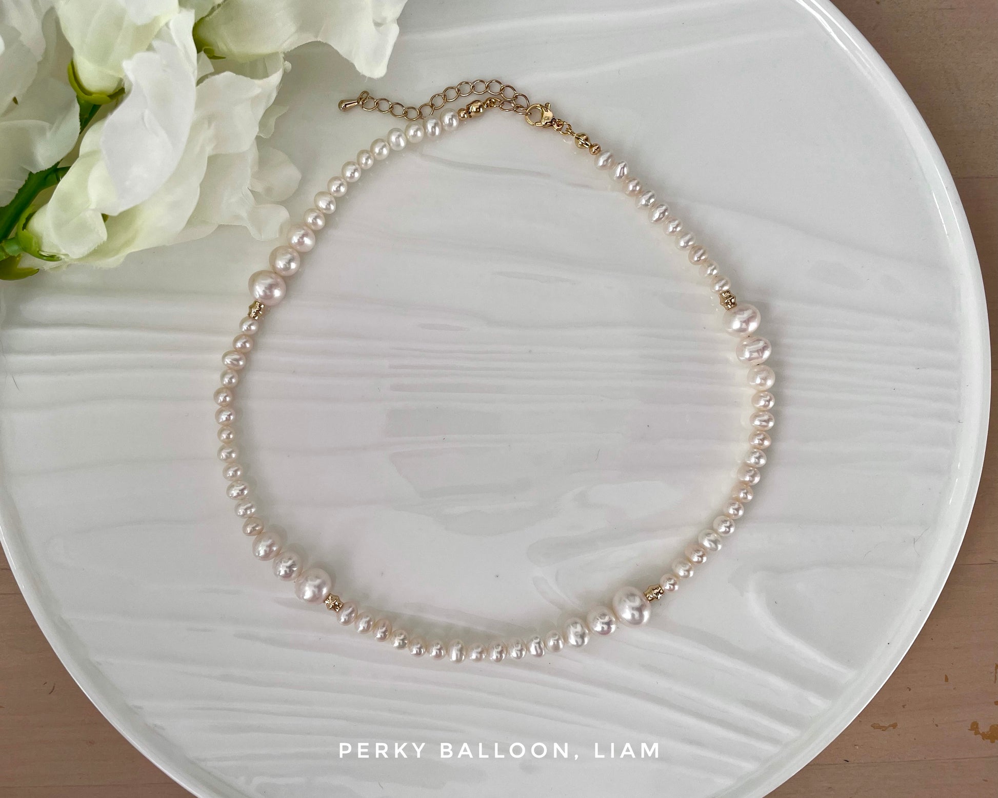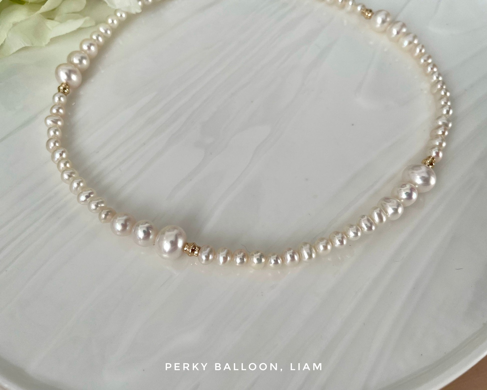 5-9mm橢圓形淡水珍珠,極強光,casual 款但豪華光🤣上身絕對吸睛,頸鏈連扣長度大約40+5 cm