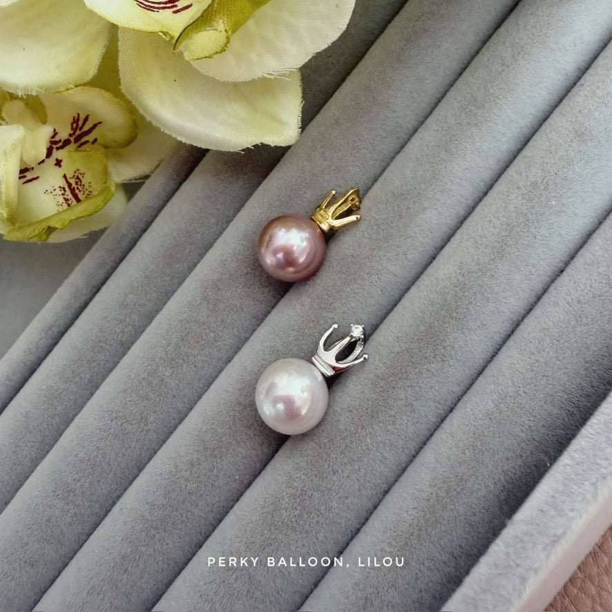 9-10 mm近圓形淡水珍珠,珍珠有白色/粉紅色/紫色,上圖sample白色/紫色,925純銀/純銀