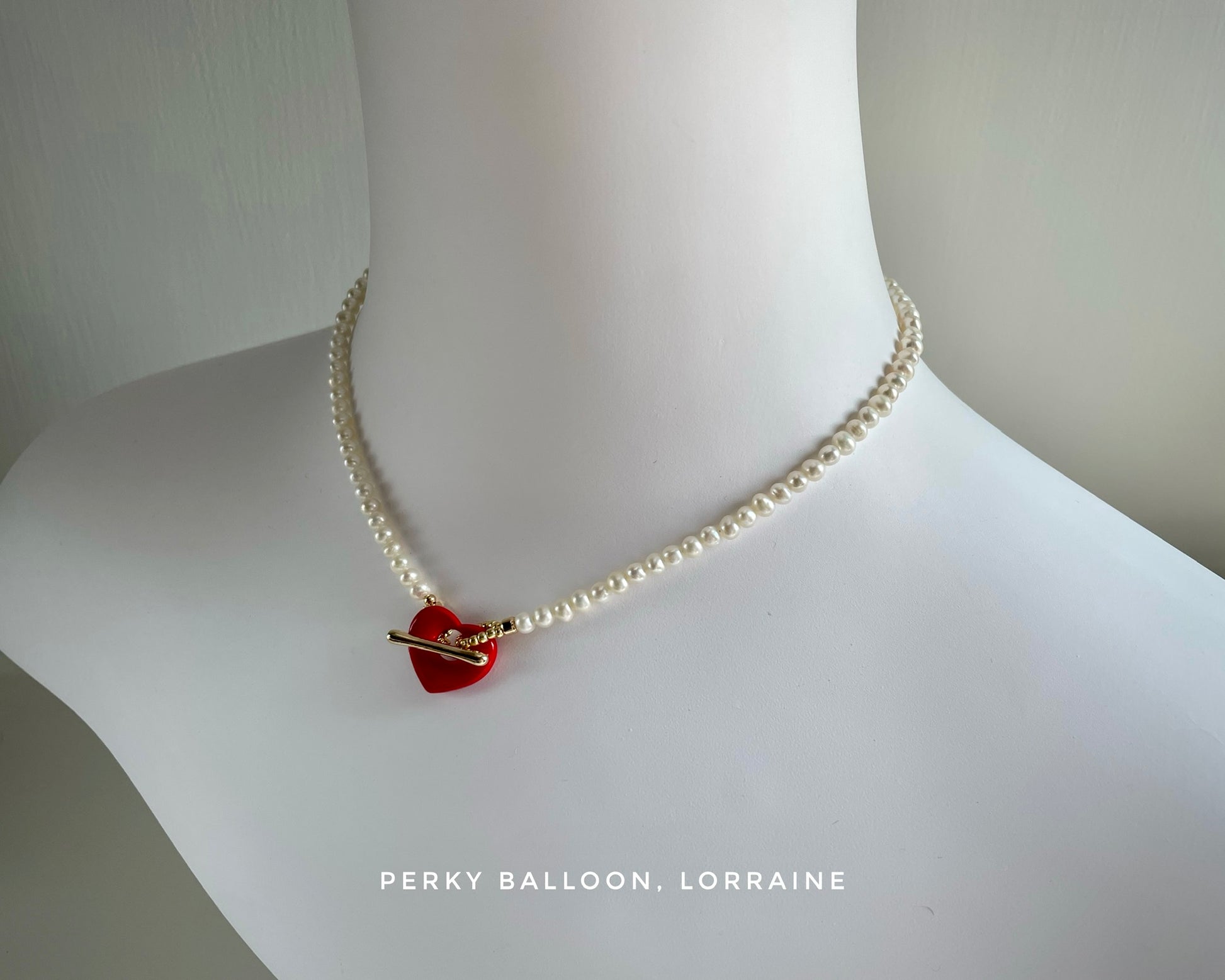 4-5mm 近圓形淡水珍珠,心心toggle 扣,頸鏈長度大約40 cm