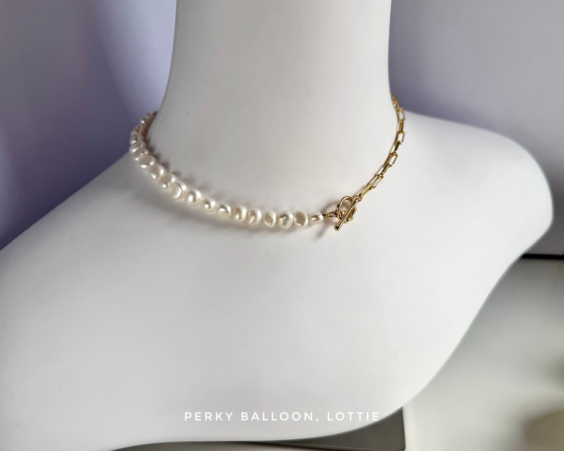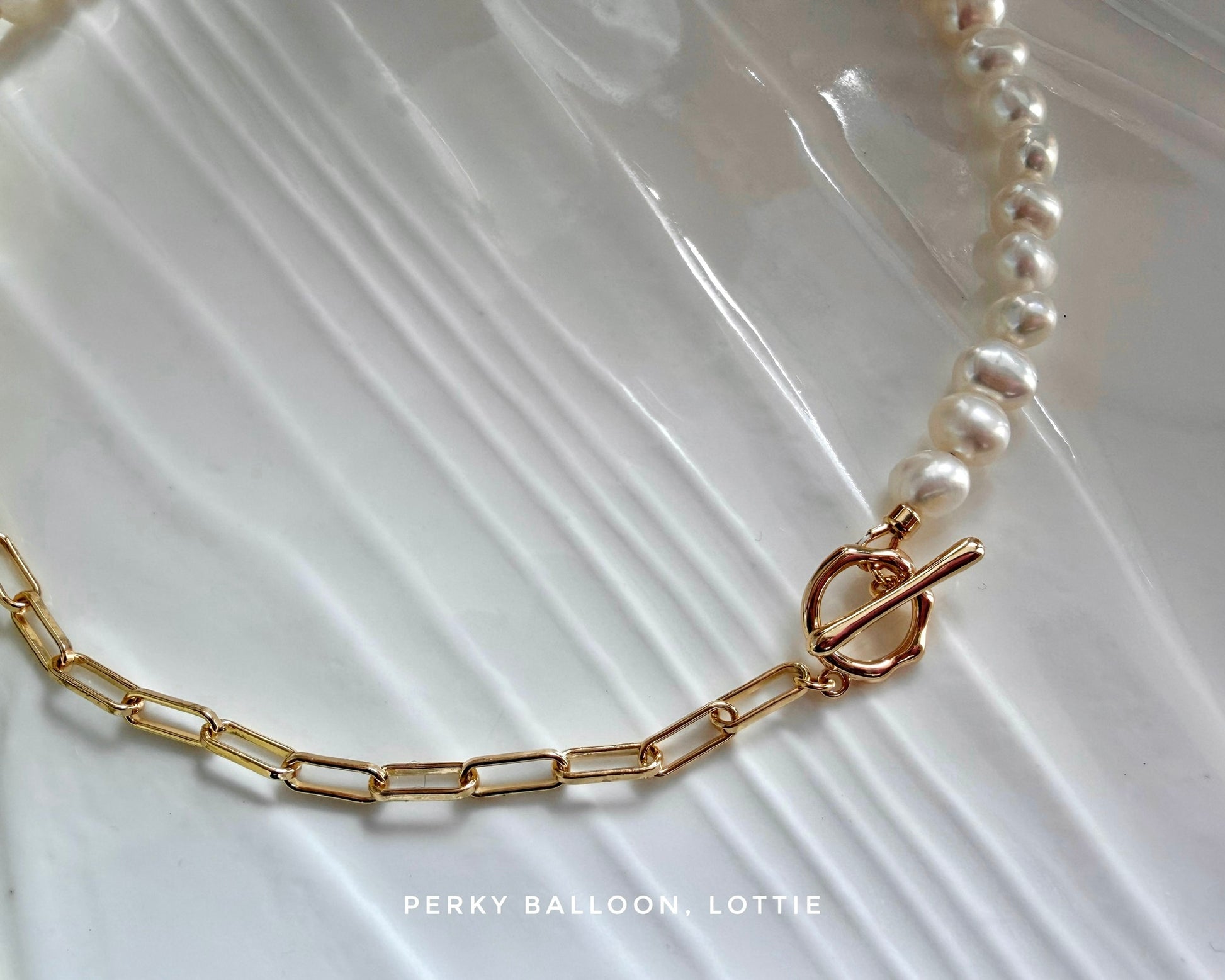 ~7mm 巴洛克淡水珍珠+黃銅鍍金飾鏈,係溫柔同反叛嘅混合體🥰,頸鏈連扣長約40 cm