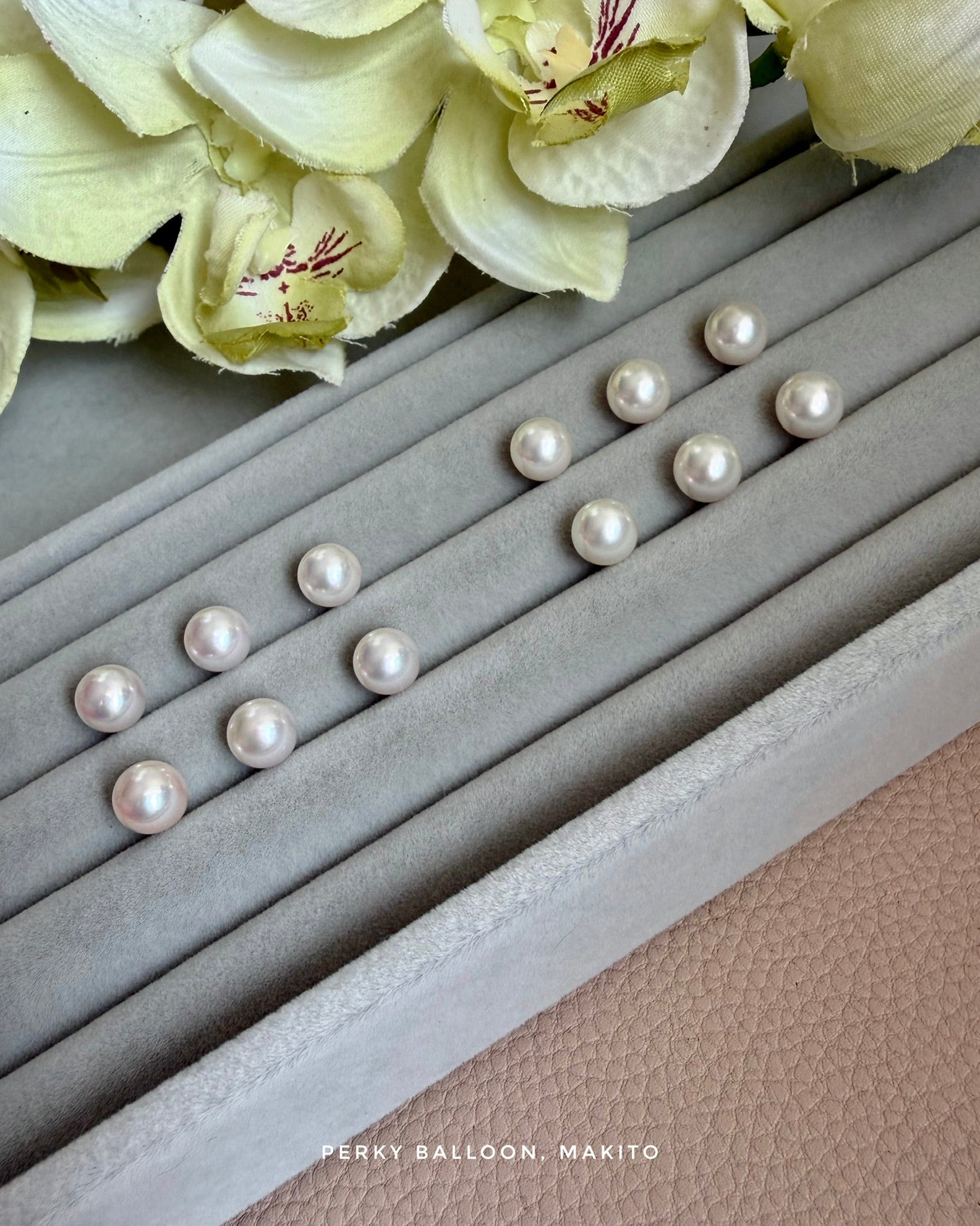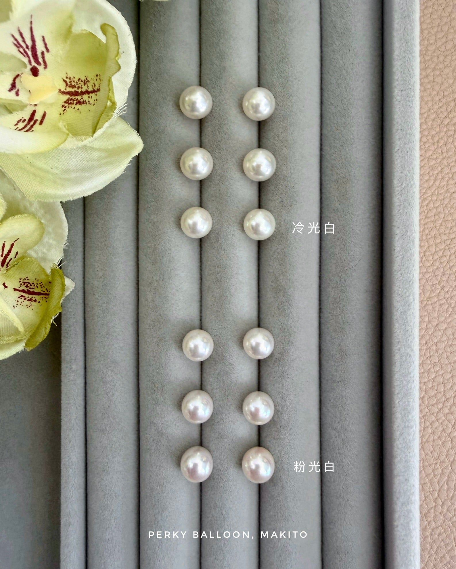 7-7.5 萬能size近正圓日本Akoya,強光微微瑕/近無瑕,可以揀冷光白/粉光白,配925純銀耳釘/日本透明樹脂耳夾